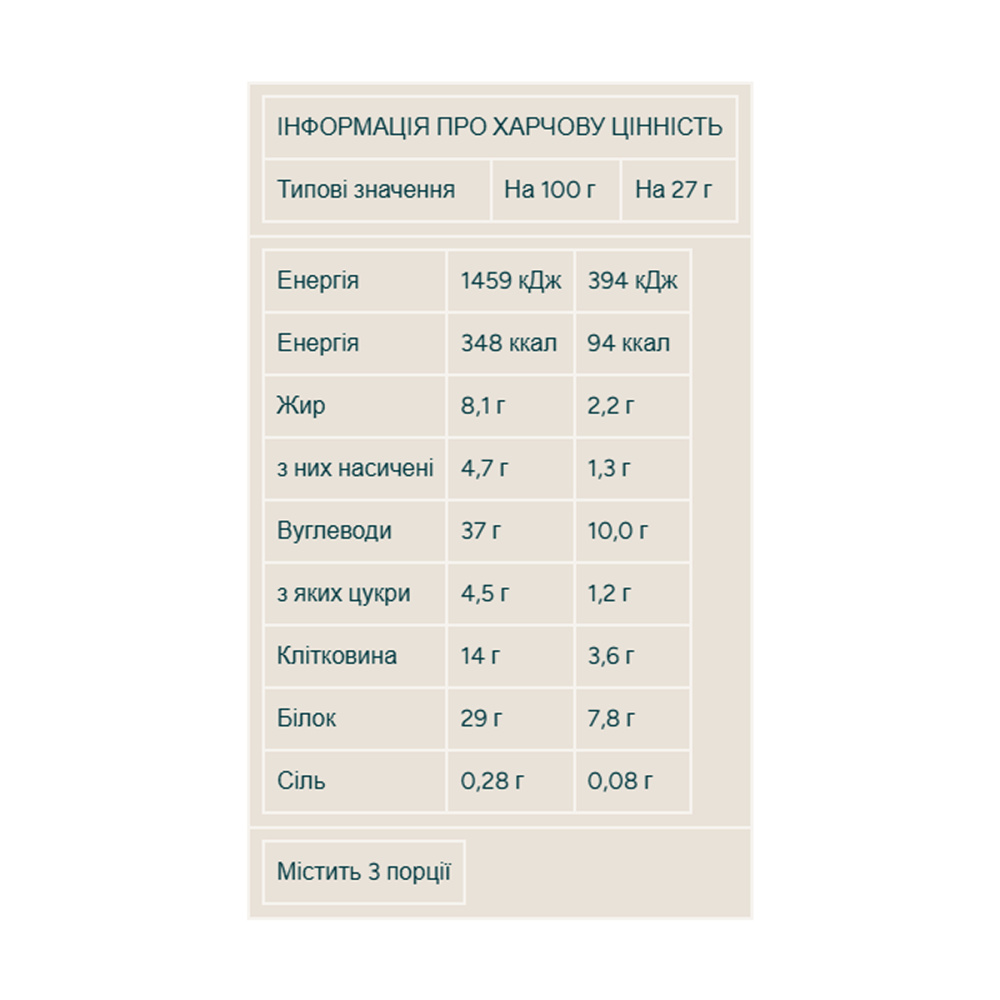 Зручна упаковка: 12 порцій по 27 г кожна.