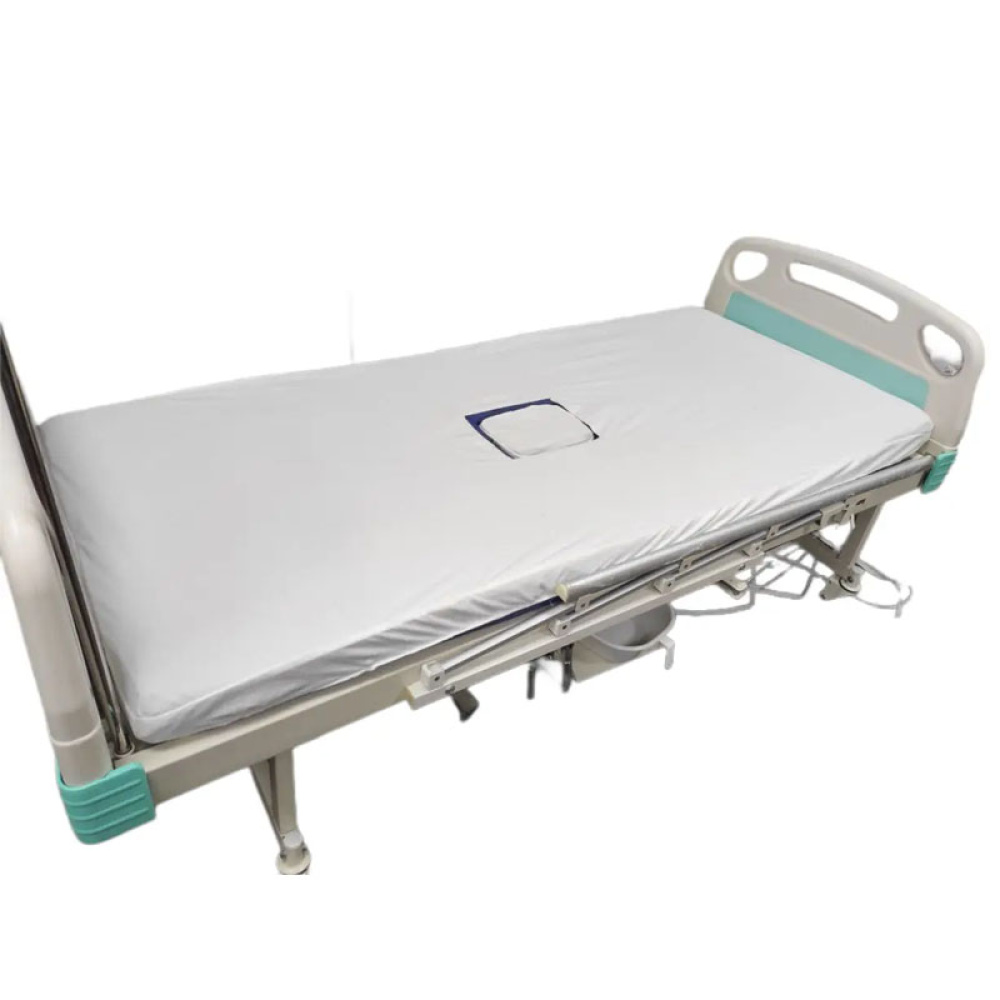 Простирадло спеціально розроблене для функціональних ліжок MIRID із санітарним (туалетним) пристроєм. Враховані особливості використання моделей з туалетом, функцією бокового перевороту та положенням «кардіо-крісло».