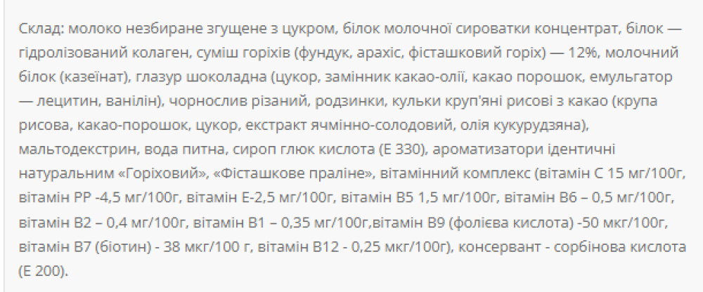 Один батончик містить 21,6 г білка.