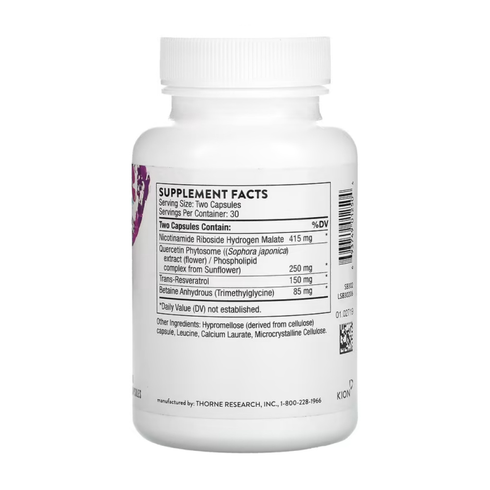 Здорове старіння Незважаючи на те, що жодна добавка не має по-справжньому «антивікової» дії, Ексклюзив NR підтримує відновлення клітин, активізує білки сиртуїну, посилює вироблення NAD+ і сприяє виробленню клітинної енергії в мітохондріях, підтримуючи процес старіння. Це удосконалена формула ResveraCel від Thorne, яка містить унікальну форму нікотинамід рибозиду (NR), яка є ексклюзивною розробкою Thorne для покращення рівня NAD+. Як прямий попередник NAD+, нікотинамід рибозид ефективно сприяє виробленню організмом NAD+, який, у свою чергу, відіграє невід’ємну роль у багатьох позитивних функціях організму, у тому числі відновлення ДНК і клітин, вироблення енергії в мітохондріях і клітинну комунікацію безпрецедентної якості. Кожен продукт Thorne виготовлений з найчистіших інгредієнтів, яким довіряють. Чемпіони обирають Thorne, і йому довіряють понад 100 професійних команд. Thorne — єдиний виробник добавок, який співпрацює з клінікою Mayo з питань досліджень та гарного самопочуття. Компанія Thorne пишається своїм партнерством із 11 олімпійськими командами США.