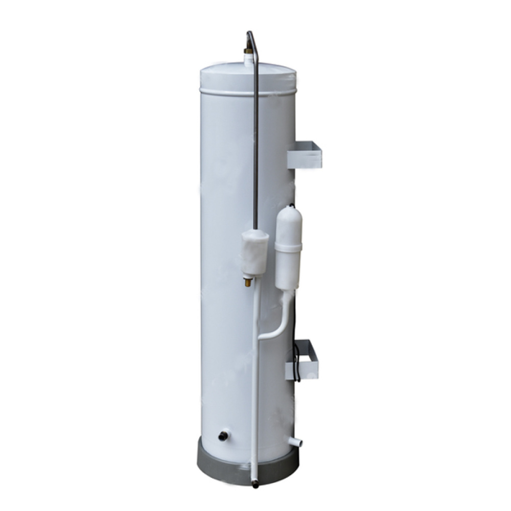 Аппарат состоит из аквадистиллятора и электрощита. Работа основана на конденсации тщательно отсепарированного пара.