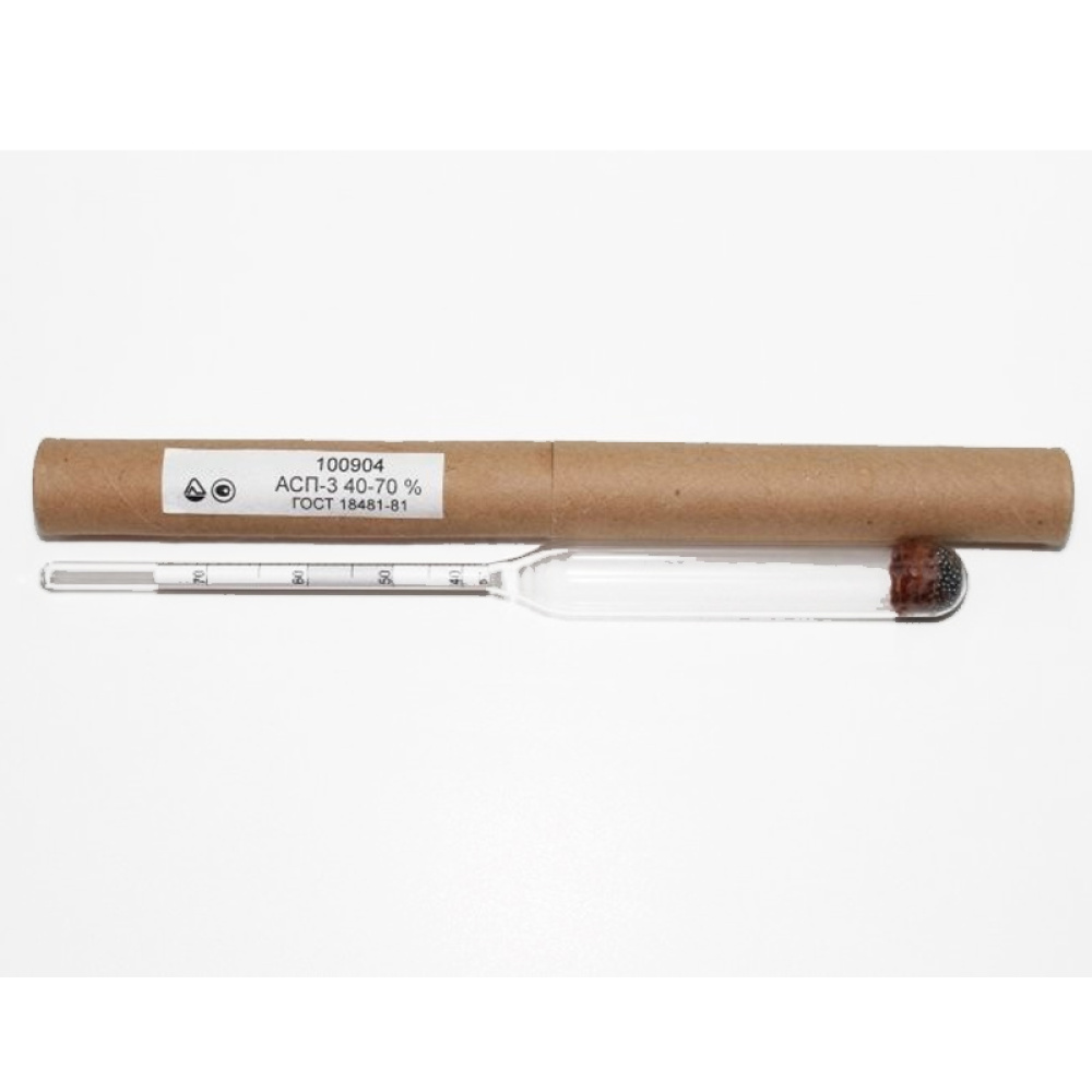 Ареометр профессиональный для измерения спиртозности АСП-3 40-70%, картонный тубус (ГОСТ).