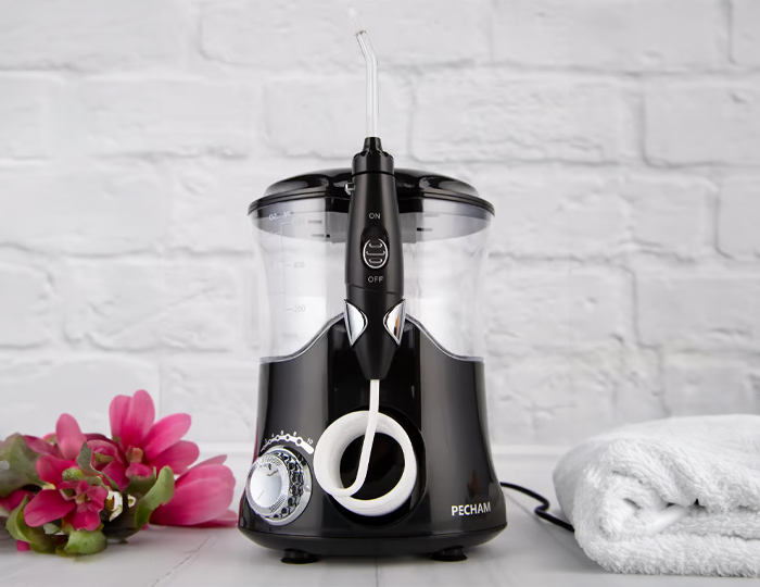 Домашнее устройство ирригатор, используется для очистки полости рта под действием струи воды, или же с помощью специальных растворов. Действие ирригатора направлено на удаление остатков пищи, возможных бактерий и загрязнений, которые находятся в промежутках между зубами и в труднодоступных местах.