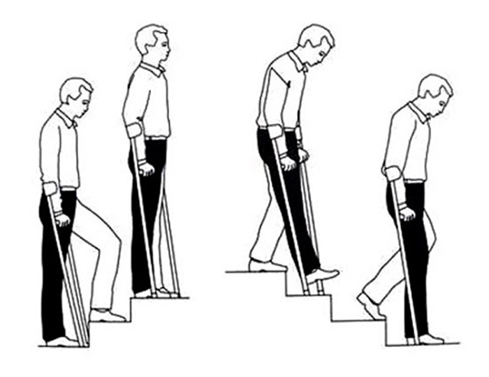 Если вы покупаете или берете костыли в аренду, то вероятнее всего вы столкнетесь с необходимостью подъема и спуска по лестнице.