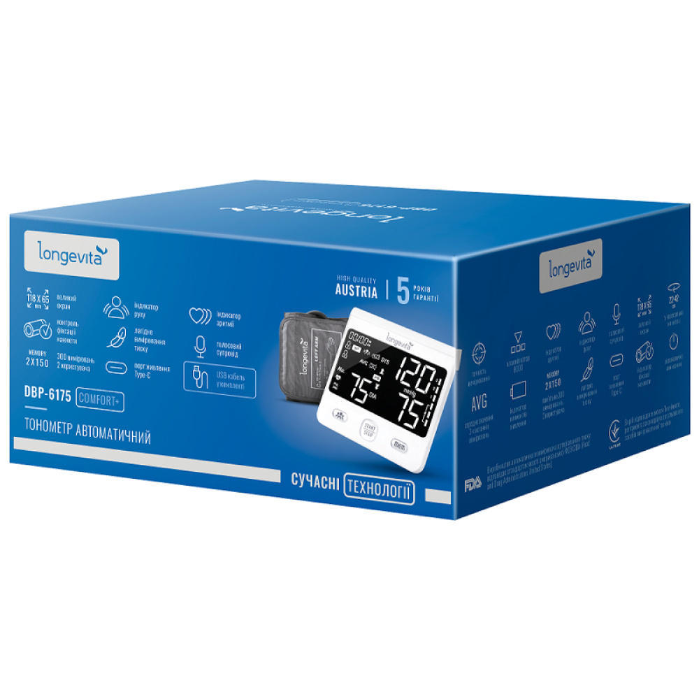 Автоматический тонометр Longevita DBP-6175- относится к серии Comfort+.