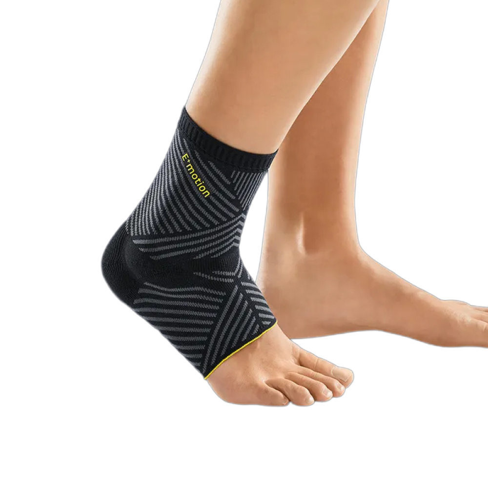 Голеностопный компрессионный бандаж с силиконовыми вкладками Levamed E+motion — голеностопный бандаж, который можно использовать при различных типах травм.