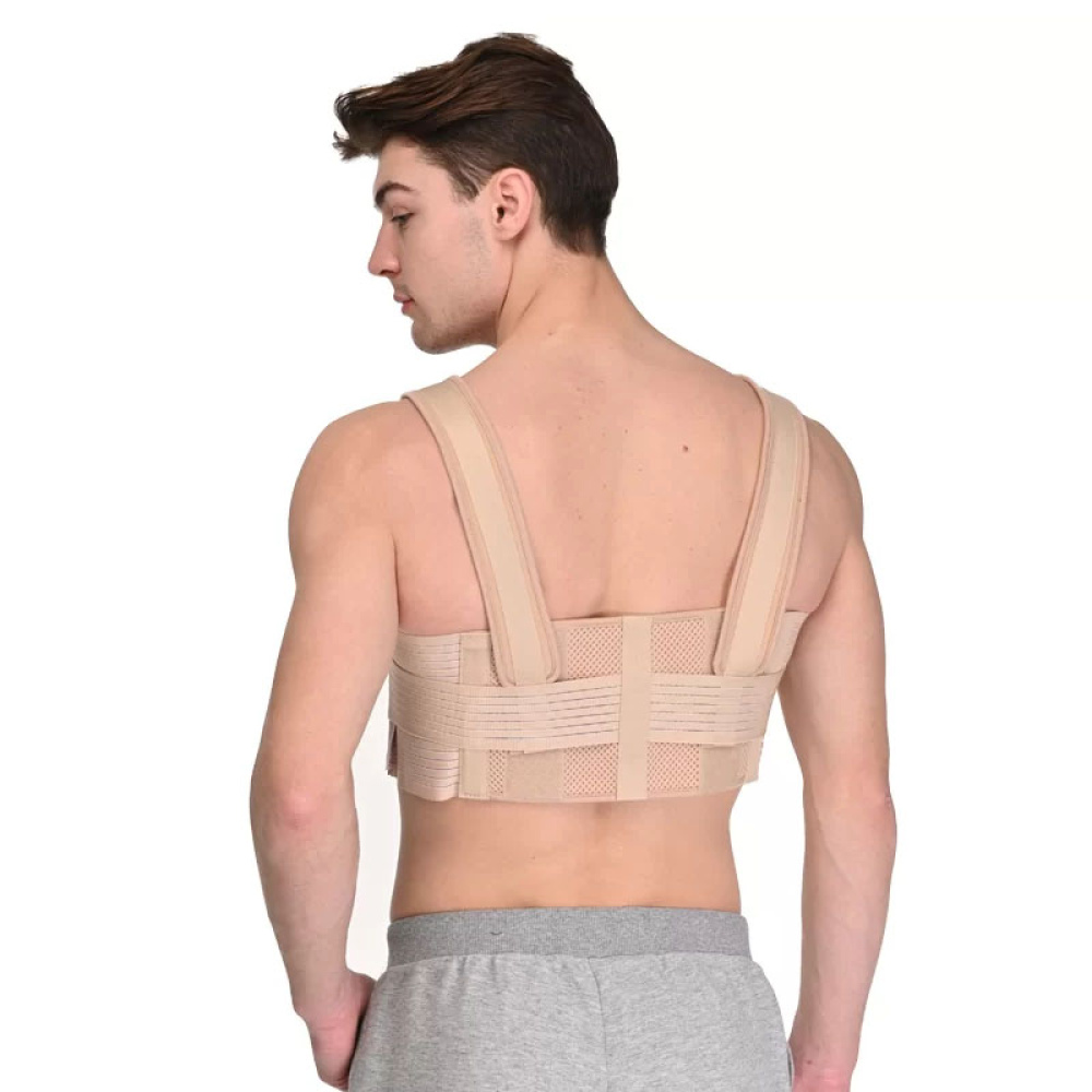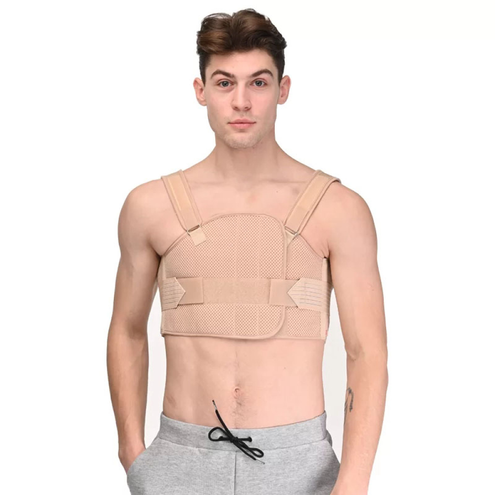 Бандаж реберный послеоперационный разъемный на грудную клетку, мужской, анатомической формы изготавливается из эластичного бандажного полотна и современного многослойного материала, предназначен для использования после операций на грудной клетке, после ушибов и переломов рёбер, а также после травм грудной клетки.