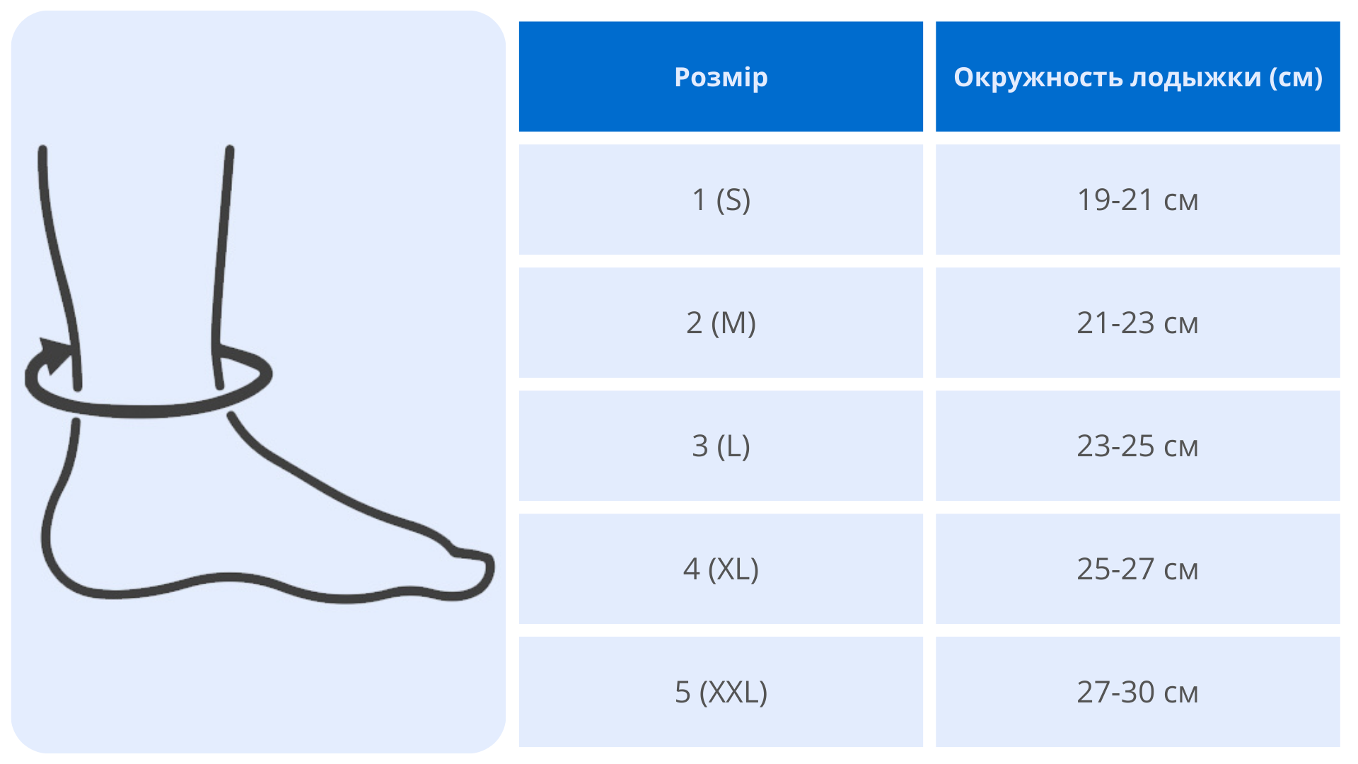 2. Выберите размер бандажа, который находится в соответствии с вашим обхватом в таблице размеров.