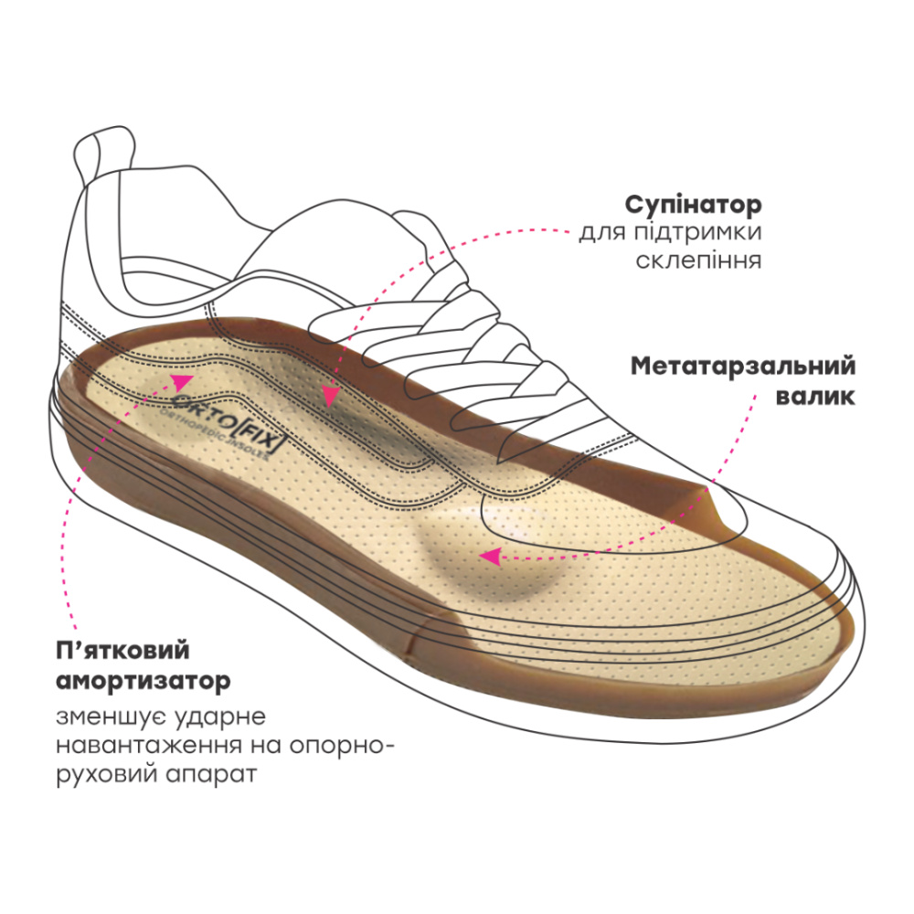 Является стандартной составляющей обуви, без ортопедических или анатомических свойств |