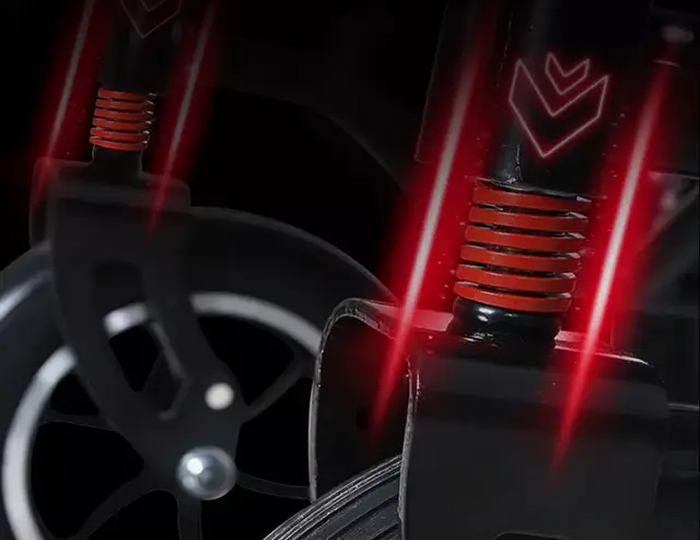 Двойная амортизация для более комфортного передвижения. Имитирует систему амортизации автомобиля, легко преодолевает дверной порог, лежачие полицейские, плохие дороги.