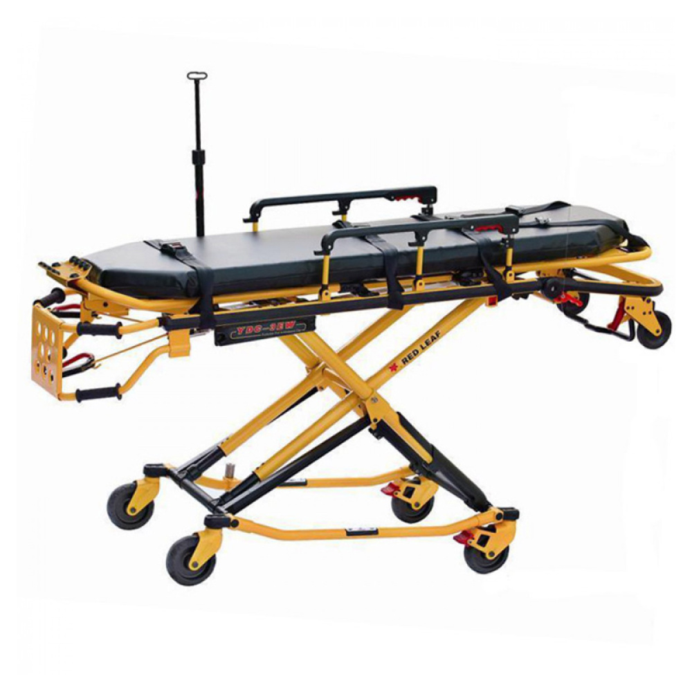 Носилки, с обеих сторон, оборудованы ограничительными скобками, которые опускаются. Имеют крепления к автомобилю скорой помощи.