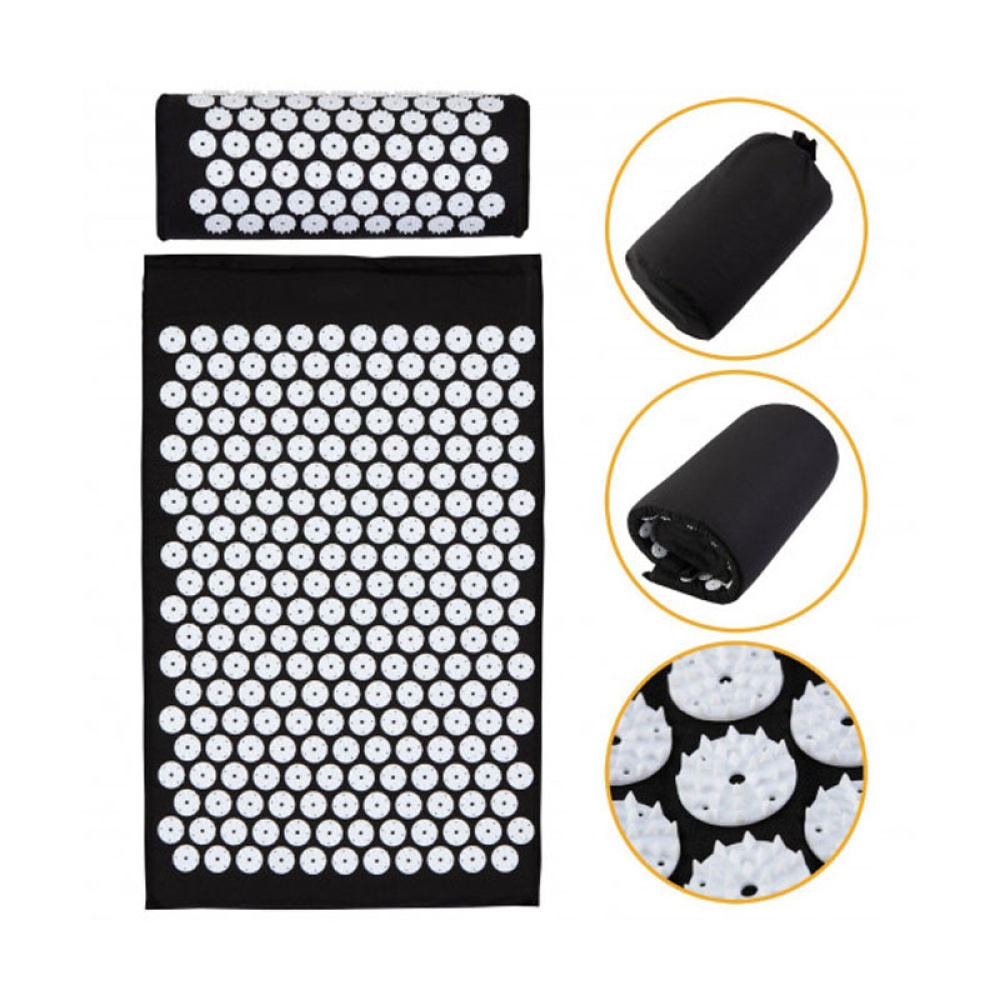 2) Полувалик (подушка) незамінний при масажному впливі на шию та поперек. Голки мають подвійне вістря, виконане за давньокитайською методикою для голчастого масажу "Квітка сливи". Конструкція голок перешкоджає глибокому проникненню голок у шкіру, надаючи лікувальній процедурі більший комфорт та ефективність. Колючі елементи виготовлені з якісного пластику та мають щільне кріплення з тканиною завдяки термічним напайкам.