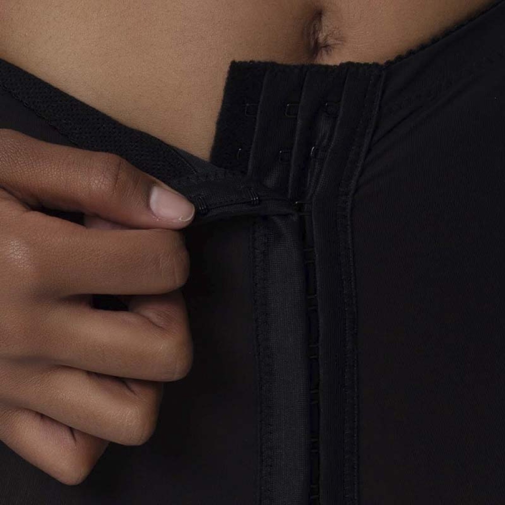 При изготовлении используется качественная «дышащая» ткань. Модель доступна в черном и бежевом цветах. Застежка при помощи крючков в три ряда, что позволяет регулировать уровень «утяжки» после снятия отеков и по мере выздоровления.