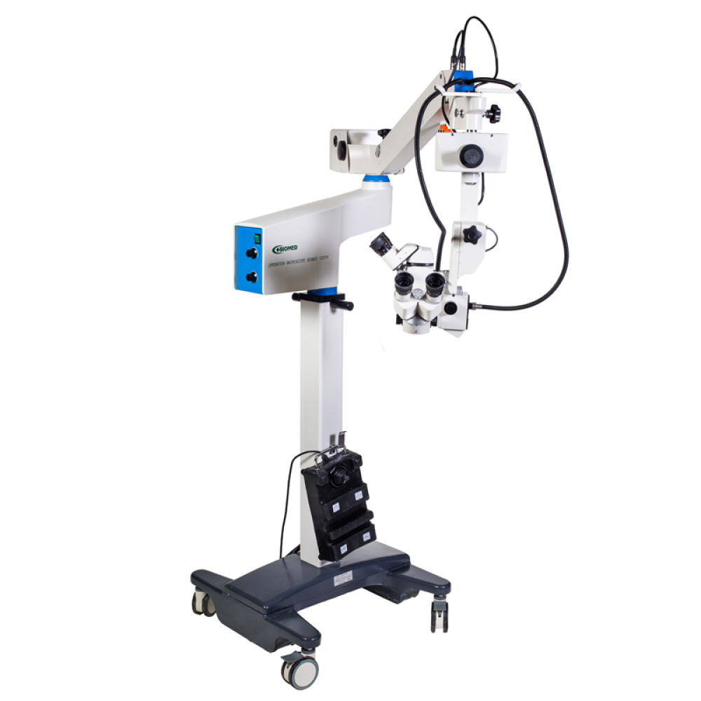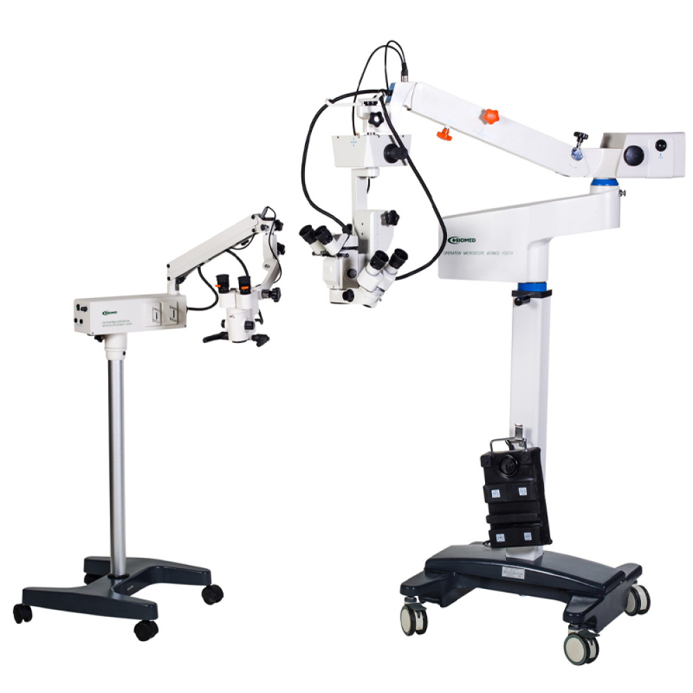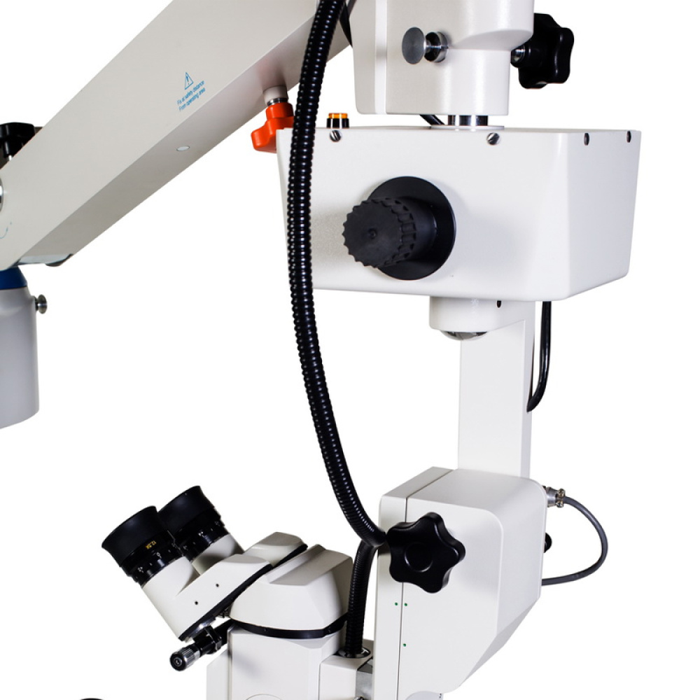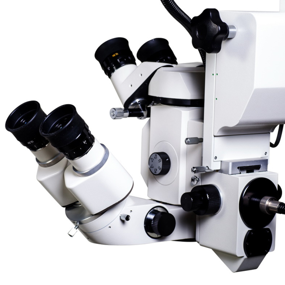 Операционный микроскоп YZ20T4 предназначен для проведения офтальмологических, ортопедических и хирургических операций хирургом и помощником. Обеспечивает стереоскопический эффект. Имеет два бинокуляра и один оптический путь. Основной микроскоп имеет пятиступенчатое увеличение, а вспомогательный – трехступенчатое. Вспомогательный микроскоп можно установить под углом 90° влево или вправо от основного микроскопа.