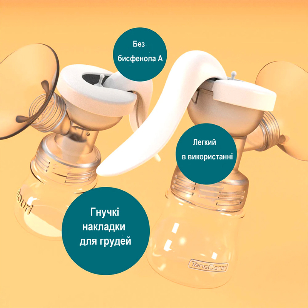TensCare Nouri — это ручной молокоотсос, разработанный для удовлетворения всех потребностей матери и обеспечивающий комфорт во время сцеживания молока. Помпа предлагает два уровня всасывания и мягко стимулирует приток молока через нежные массажные подушечки. Мягкий силикон и специальная отделка раструба обеспечивают деликатный контакт с кожей груди.
