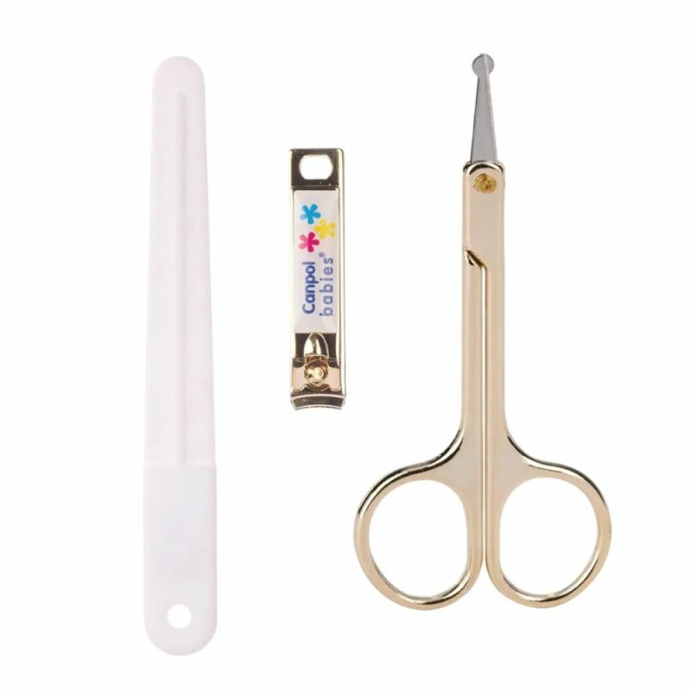 Комплект по уходу за ногтями содержит: ножницы, кусачки и пилочку для ногтей.