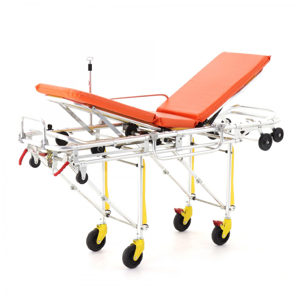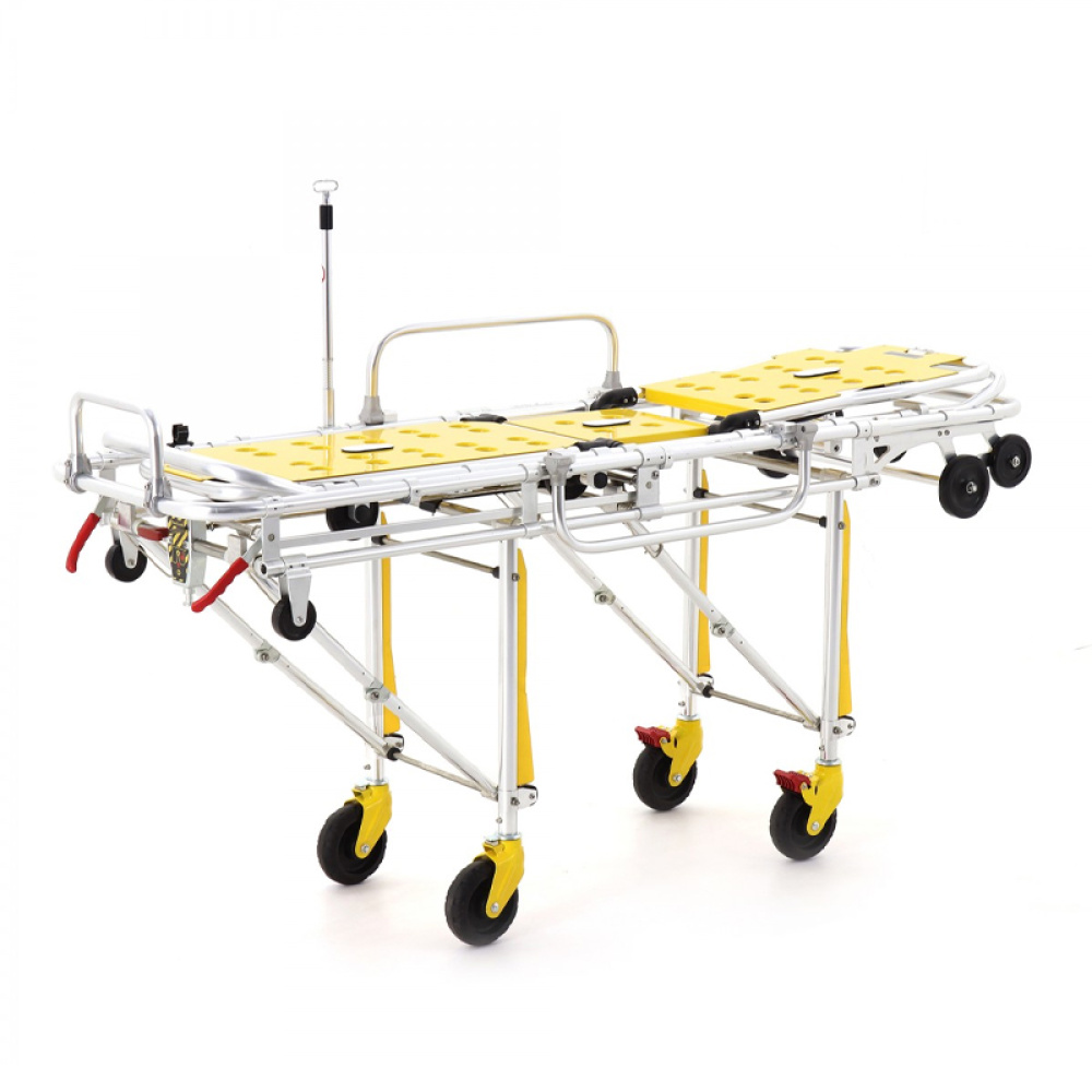 Для облегчения загрузки каталка оборудована двумя парами колес под секцией для головы. При необходимости, загрузить носилки в автомобиль скорой помощи может один человек.