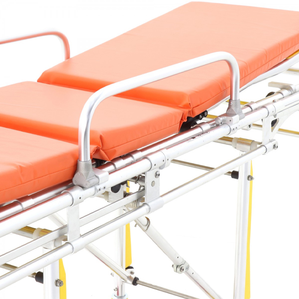 Верхняя часть носилок съемная, трехсекционная, изготовленная из сплава алюминия, может использоваться отдельно от каталки.