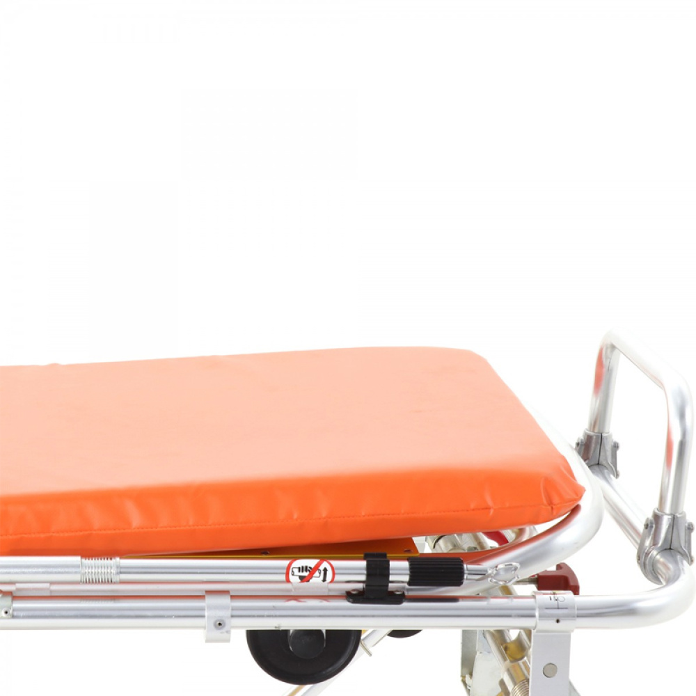 Поверхность носилок покрыта матрасом (толщина 6 см), который сделан из водостойкого и невоспламеняющегося материала. Угол подъема спинной секции регулируется с помощью пневматической пружины, а ножной – вручную.