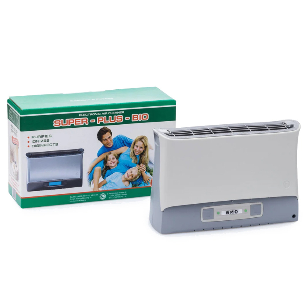 Работа очистителя воздуха Супер-Плюс Био основана на принципе «ионного ветра», который возникает в результате коронного разряда и обеспечивает движение потока воздуха через кассету прибора, при этом частицы аэрозоля (пыль, дым, микроорганизмы), загрязняющие воздух, всасываются вместе с воздухом в кассету, приобретая электрический заряд и под действием электростатического поля прилипают к осадительным пластинам, расположенным внутри кассеты.