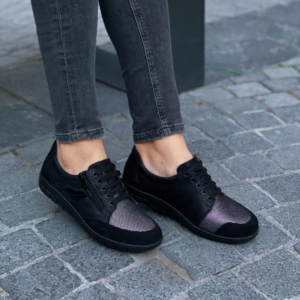 Мягкая эластичная вставка обеспечивает комфорт для тех, кто имеет проблемы с косточкой большого пальца, позволяя носить обувь без неприятных ощущений.