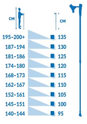 Эффективность занятий скандинавской ходьбой определяется правильностью использования методики ходьбы. Высота палки устанавливается в зависимости от роста пользователя и от желаемого вида нагрузки. Для начинающих рекомендуется следующая высота палки в зависимости от роста пользователя: