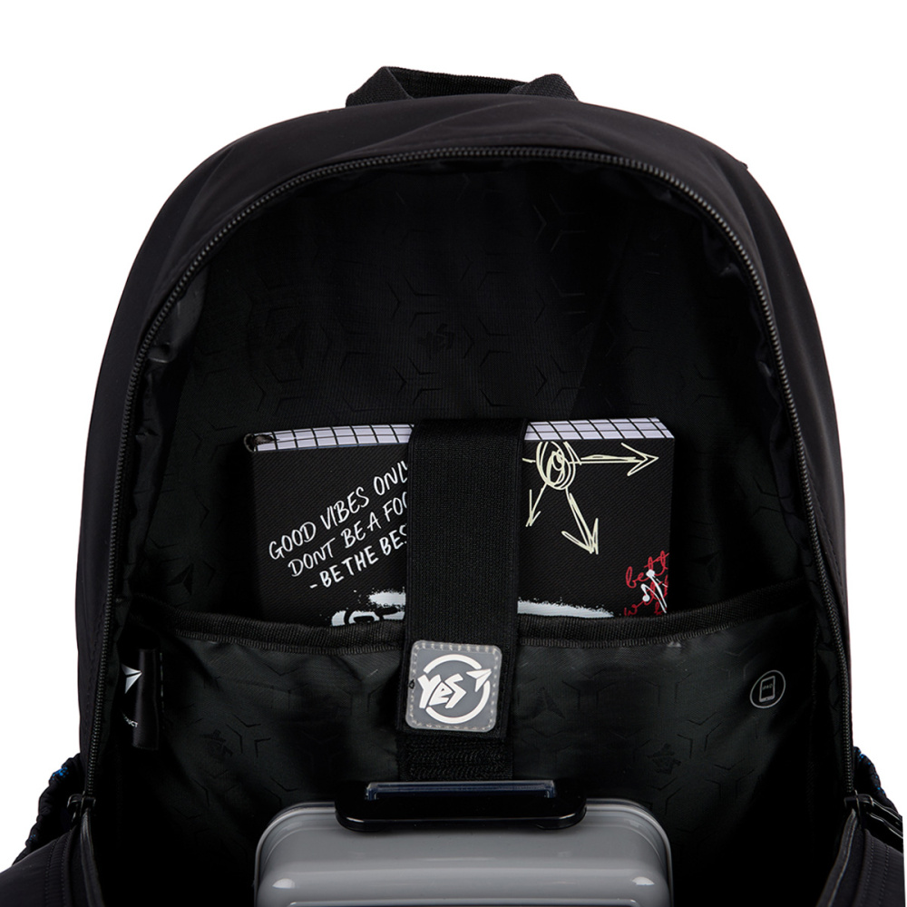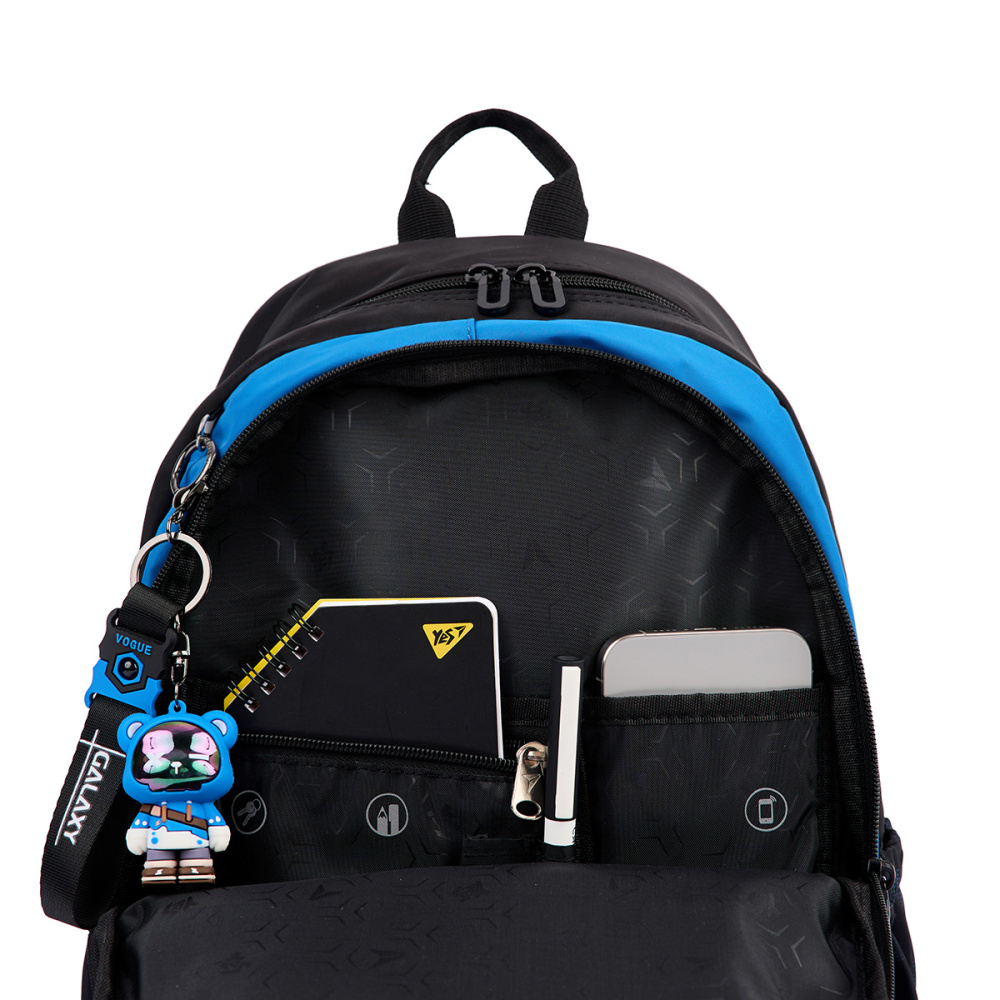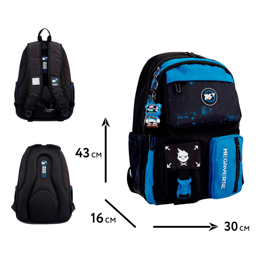 Дизайн рюкзака Yes TS-43 Megaverse выделяется контрастным сочетанием черного цвета с яркими элементами цвета электрик, что делает его настоящим трендом среди молодежи. Это идеальный выбор для тех, кто хочет выглядеть стильно и современно. Стильный брелок дополняет образ.