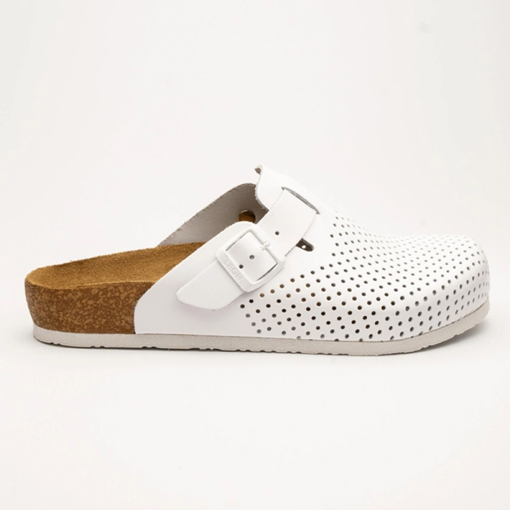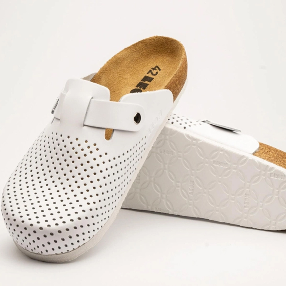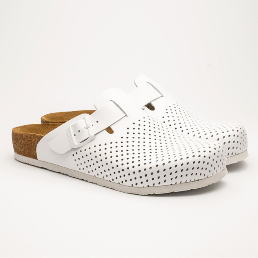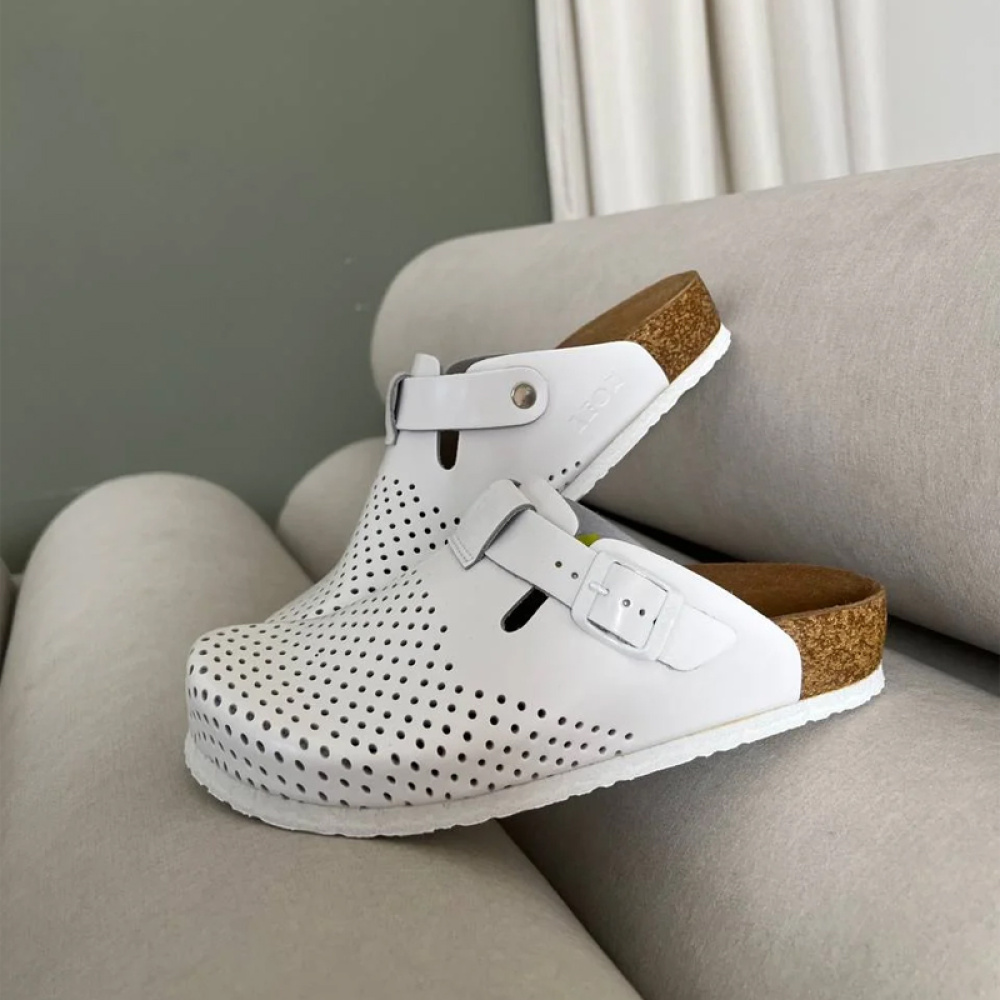 Стелька выполнена из натуральной кожи, что предотвращает скольжение ноги по сабо.