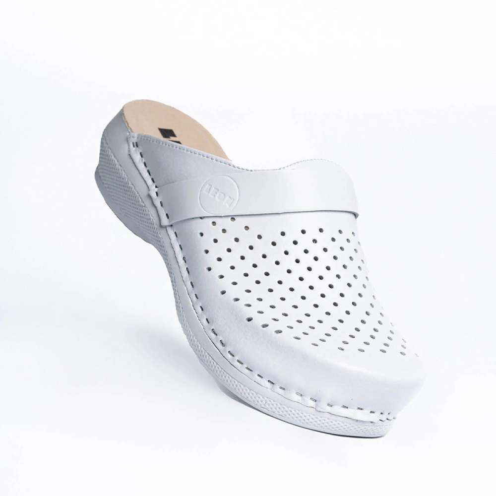 Стелька выполнена из натуральной кожи, что предотвращает скольжение ноги по сабо. Благодаря правильной продуманной модели, сабо Леон 102 поддержит вашу более легкую и правильную походку, разгрузит позвоночник и поможет в создании правильной осанки, снимет усталость ног. После дня в этой обуви ноги будут минимально уставать.