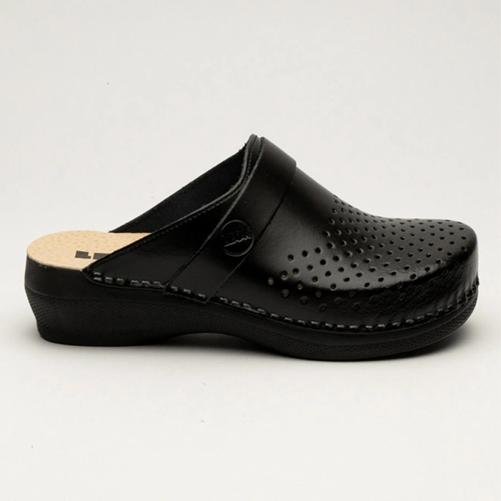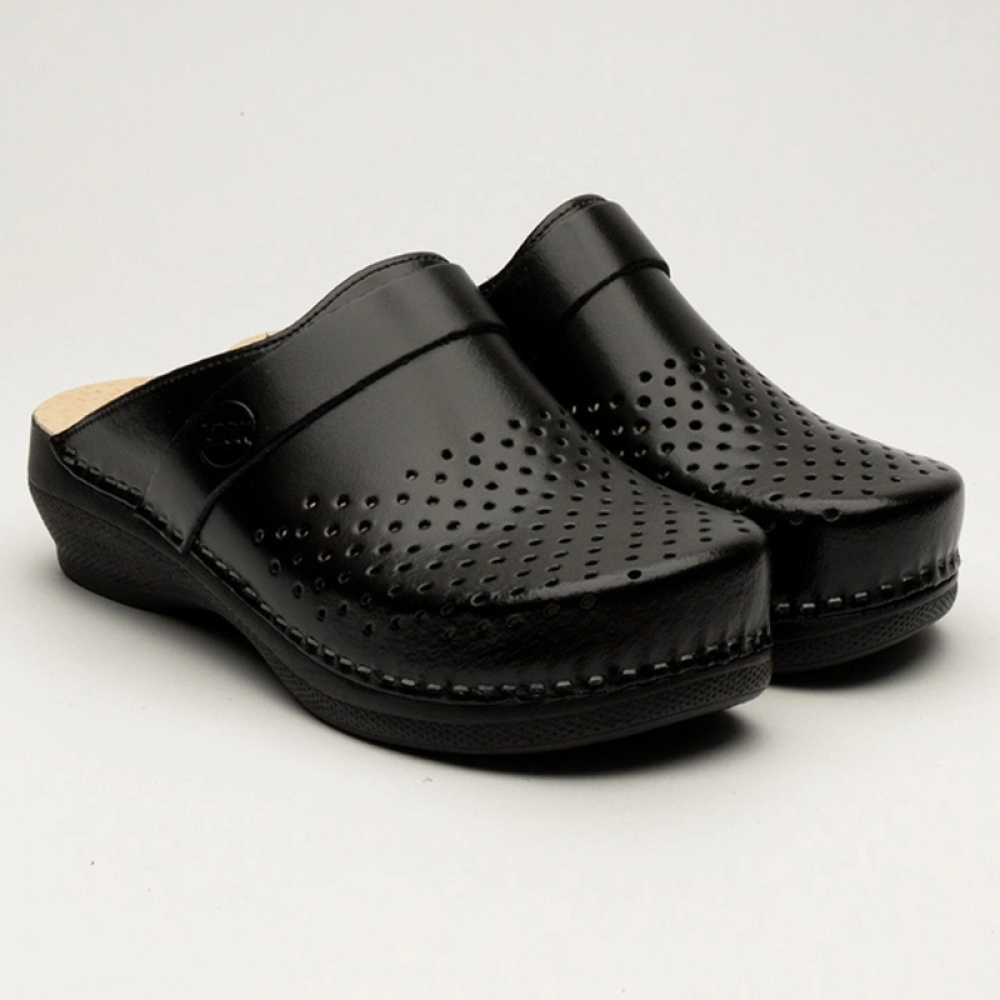 Стелька выполнена из натуральной кожи, что предотвращает скольжение ноги по сабо. Благодаря правильной продуманной модели, сабо Леон 102 поддержит вашу более легкую и правильную походку, разгрузит позвоночник и поможет в создании правильной осанки, снимет усталость ног. После дня в этой обуви ноги будут минимально уставать.