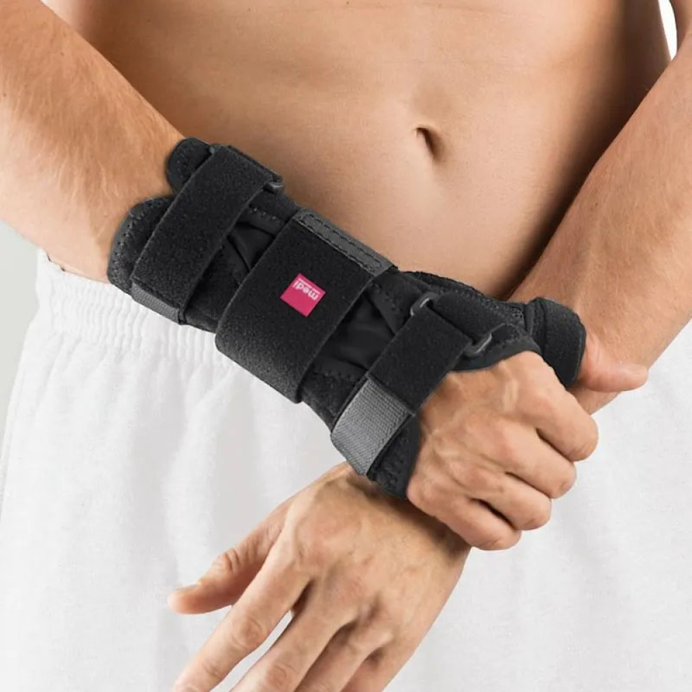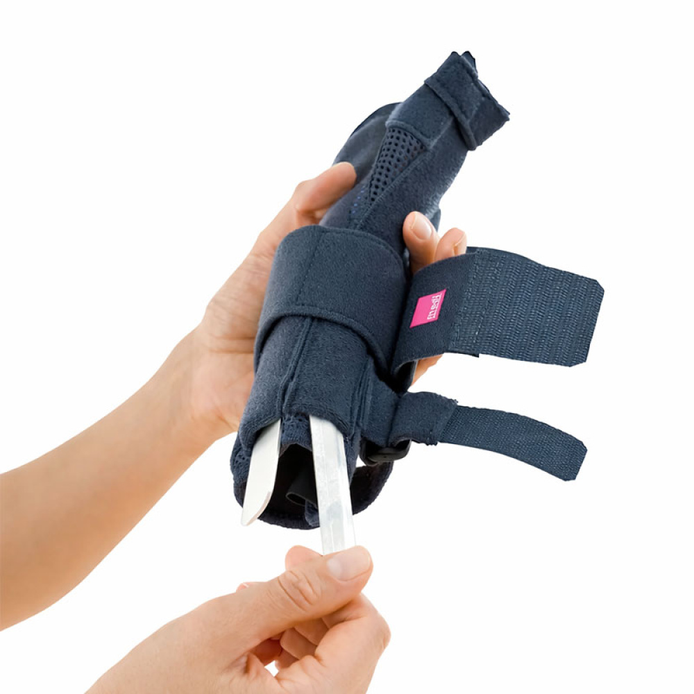 Благодаря дышащей ткани medi Airtex, которая выводит влагу, кожа под шиной не повреждается, а само изделие легкое. Шина индивидуально моделируется под руку за счет системы регулируемых застежек-липучек и моделируемой алюминиевой вставки.