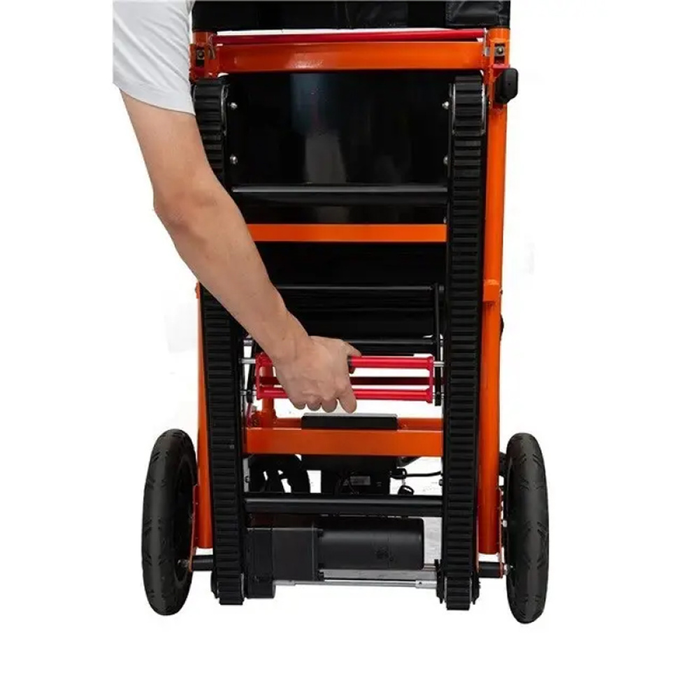 Уникальная конструкция гусениц делает удобным и безопасным подъем и спуск по лестнице. Регулируемый угол наклона гусеничной конструкции с двумя вариантами положения подходит для различных размеров лестничной ступеньки.