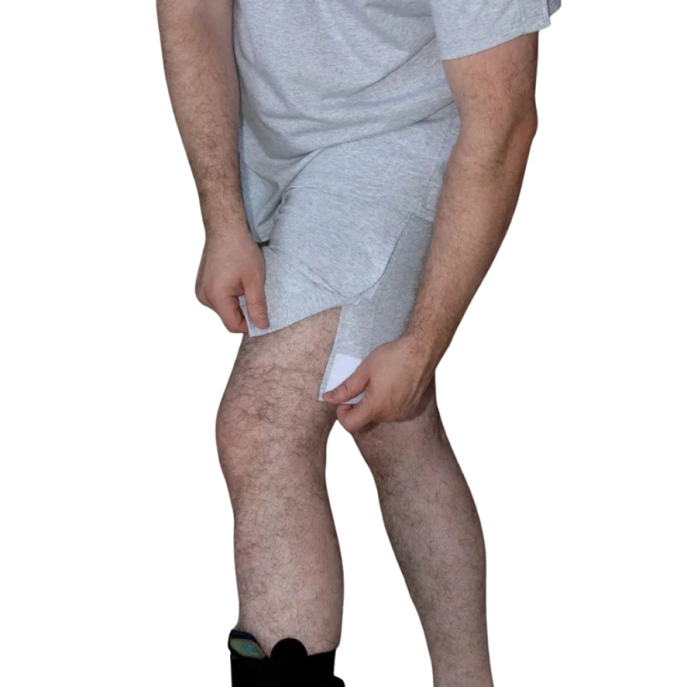 Адаптивные шорты (трусы), созданные для людей с травмами нижних конечностей, в гипсе или в период реабилитации. Конструкция с удобными застёжками-фиксаторами по всей длине помогает быстро и безболезненно надевать/снимать изделие и облегчает уход и осмотры.