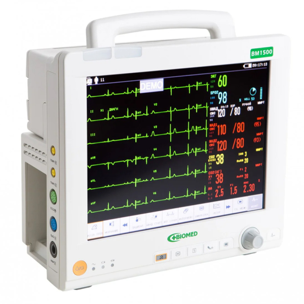 Специализированный модульный монитор BM1500 для кардиологических отделений с 12.1 дюймовым цветным сенсорным дисплеем высокого разрешения - это современная система комплексного отслеживания жизнедеятельности пациента, которая сочетает в себе мониторинг параметров жизнедеятельности пациента и электрокардиографических обследований с целью исследования сердца и диагностики заболеваний сердечно-сосудистой системы.