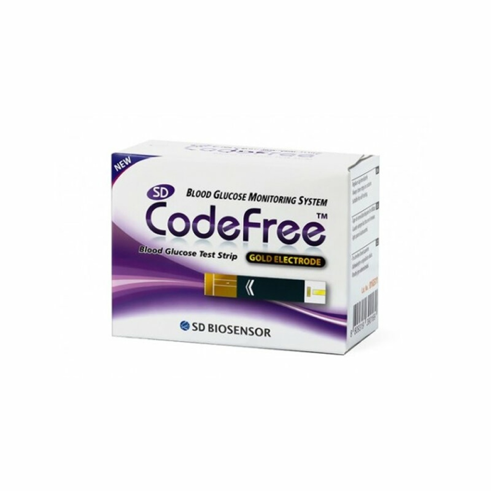 Тест полоски для определения уровня глюкозы в крови CodeFree. Глюкоза крови смешивается с реагентом тест-полоски, создавая небольшой электрический ток. После извлечения тест-полоски из контейнера немедленно плотно закройте его крышку. Тест полоски предназначены для работы с глюкометром CodeFree. Использование других тест-полосок с этим глюкометром может привести в ошибочным результатам.