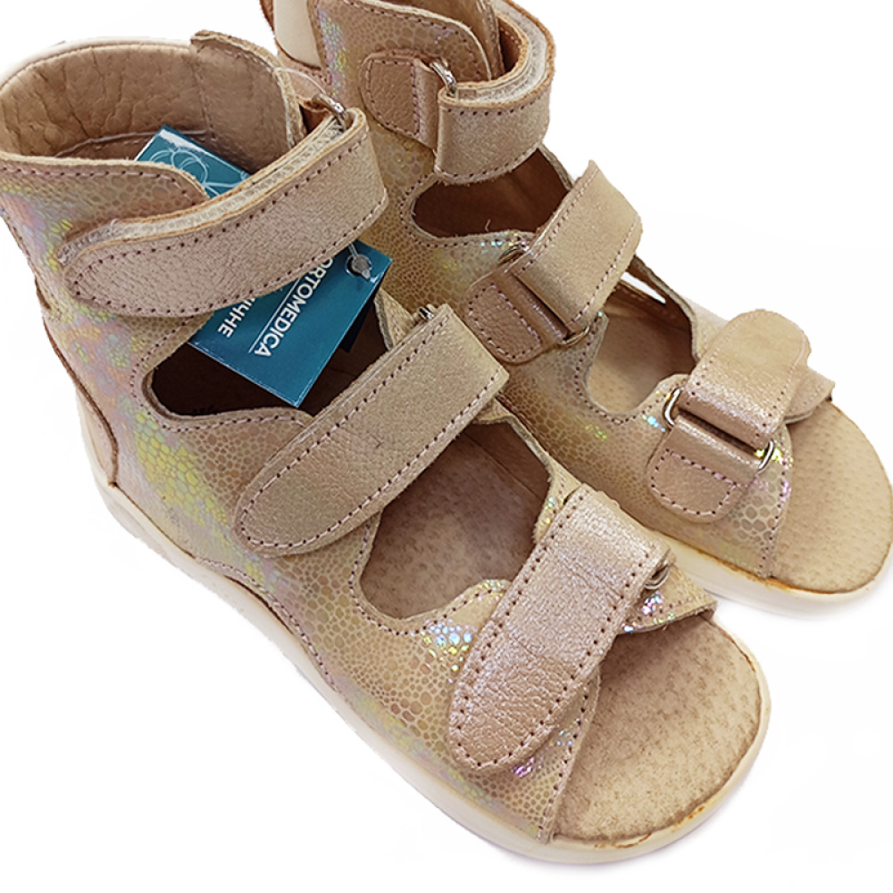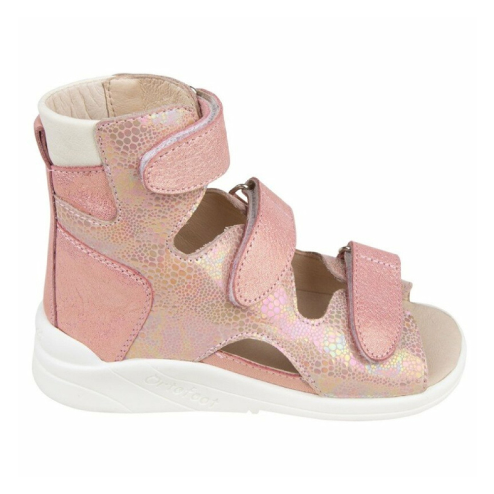 Босоножки Ортофут 121 — это обувь с открытым носком, с выкладкой продольного свода, с высоким, жестким задником, который фиксирует пятку в правильном положении. Детская ортопедическая обувь Ортофут, модель 121 может применяться для коррекции вальгусной установки стопы, с незначительной деформацией пяточной кости и голеностопного сустава.