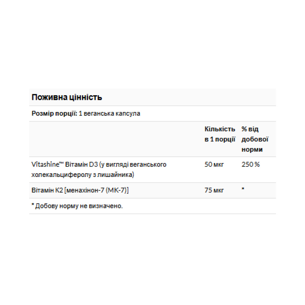 Что делать, если вы принимаете добавки с витаминами D и K или получаете их из своего рациона? Теперь Swanson предлагает низкую дозу витамина D3 и K2 специально для вас. Витамины D3 и K2 в низких дозах от Swanson содержат 50 мкг (2000 МЕ) веганского витамина D3, полученного из лишайника, и 75 мкг витамина K2 без сои, полученного из нута, в виде МК-7 в форме веганской капсулы для употребления один раз в день, помогающий поддерживать здоровье сердечно-сосудистой системы и укреплять кости.