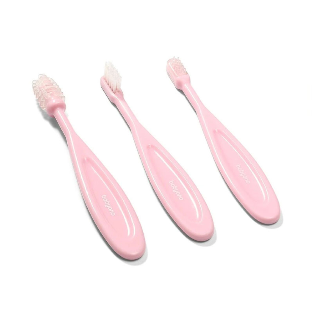 Набор мягких зубных щеток незаменим в ежедневном уходе за полостью рта ребенка. Набор включает 3 щетки: первая – силиконовая, предназначенная для массирования десен, для детей, у которых еще нет своих зубов, вторая – силиконовая, для чистки первых зубов, третья – с мягким волосом, для детей постарше.