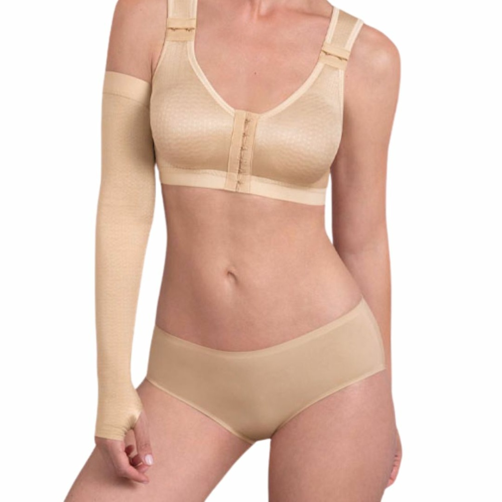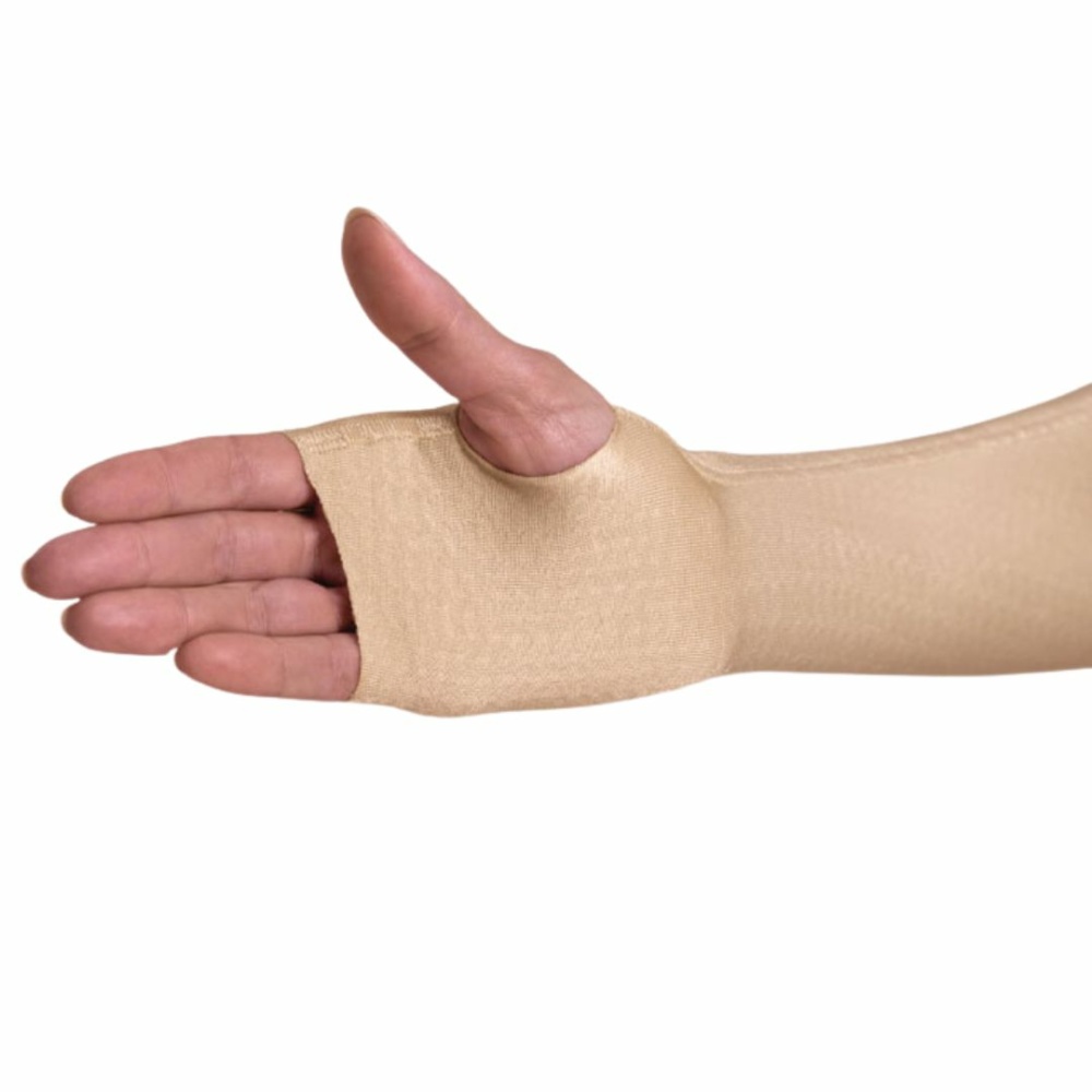 Тканина/дизайн Інновацiя вiд Anita - тканина Limph-O-Fit Рукав довжиною до плеча з контурним вирізом по верхній кромці. Комфортна силіконова стрічка з внутрішньої сторони для фіксації верхньої частини рукава. Особливий крій в області передпліччя запобігає набряк руки. Підбір розміру компресійного рукава повинен здійснюватися навченим персоналом. Рукав не повинен бути занадто тісним. Рукав легко надягати, завдяки м'якої структурної тканини. 71% PA, 29% EL (LYCRA) Клас компресії 1 Показання При лімфостазі руки. Принцип дії Завдяки опуклій структурі тканини надає масажну дію на підшкірну клітковину і стимулює відтік лімфи. Особлива структура тканини активує відтік лімфи. Гарне виведення вологи з поверхні шкіри створює сприятливий мікроклімат.