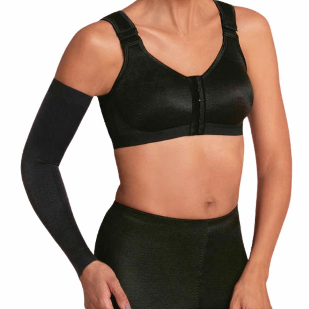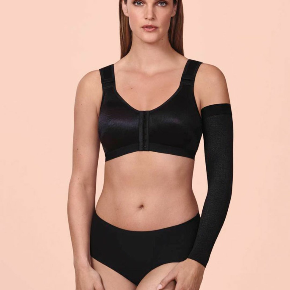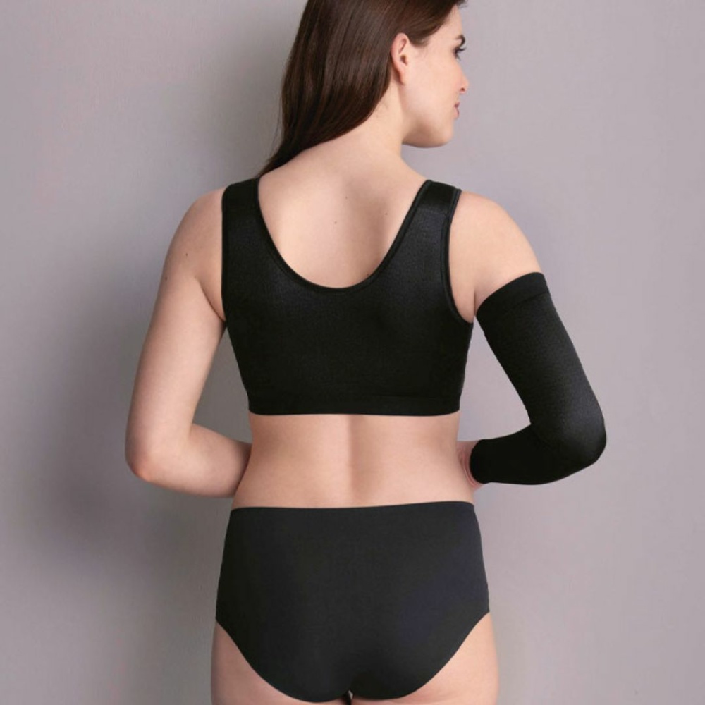 Компресійний післяопераційний рукав Anita Care 1114 від плеча до зап'ястя забезпечує легкий ступінь компресії. Рукав необхідно використовувати у перші 1,5-2 місяці після операції та при фізичних навантаженнях, при переїздах, перельотах та заняттях спортом для профілактики лімфостазу. Рукав виготовлений з інноваційної тканини від Anita - Limph-O-Fit Принцип дії: фактурна структура надає масажний та дренажний вплив на підшкірну тканину та на дрібні лімфатичні судини. Виріб відрізняється комфортом завдяки контурному вирізу по верхній кромці та силіконовій стрічці з внутрішньої сторони, яка призначена для фіксації верхньої частини рукава, запобігаючи сповзанню виробу та можливому набряку руки. Показання При легкому лімфостазі руки Після операції на верхніх кінцівках Після ліпосакції Склад: 71% PA, 29% EL, LYCRA®