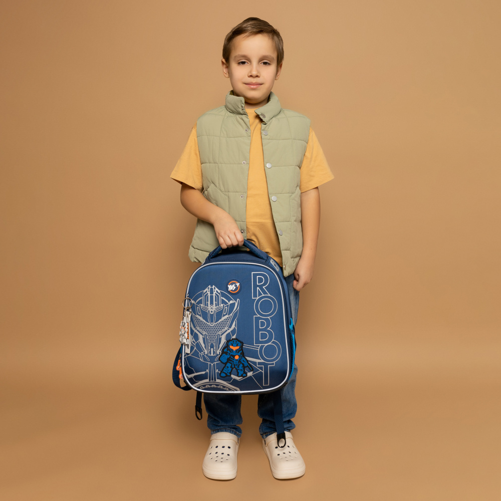 Каркас рюкзака виготовлений із щільного EVA матеріалу, який не деформується навіть при легкому тиску, зберігаючи форму при нерівномірному завантаженні рюкзака. Зовнішній матеріал ортопедичного рюкзака – міцний поліестер.