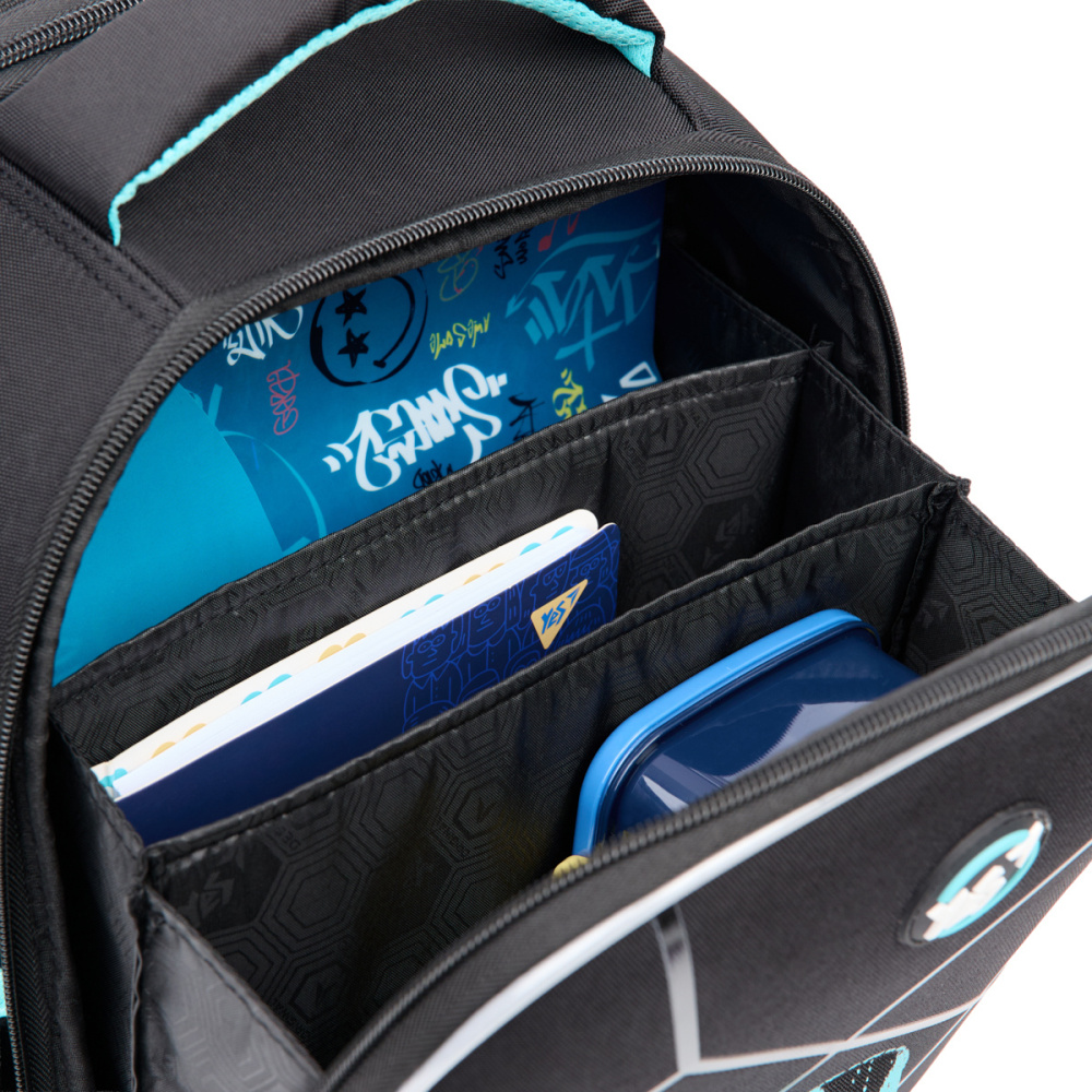Анатомічні S-подібної форми ущільнені лямки знижують навантаження на плечі, завдяки чому школяр не відчуває дискомфорт під час носіння рюкзака.