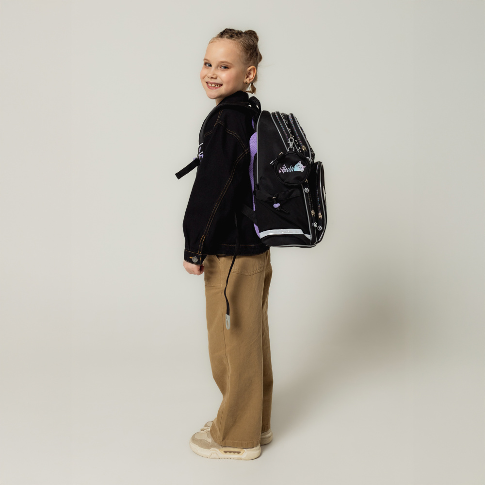Ортопедична спинка рюкзака з пом’якшувальними подушечками вздовж хребта, а також в шийній та поперековій зонах вирівнюють тиск та підтримують поставу дитини в правильному положенні.