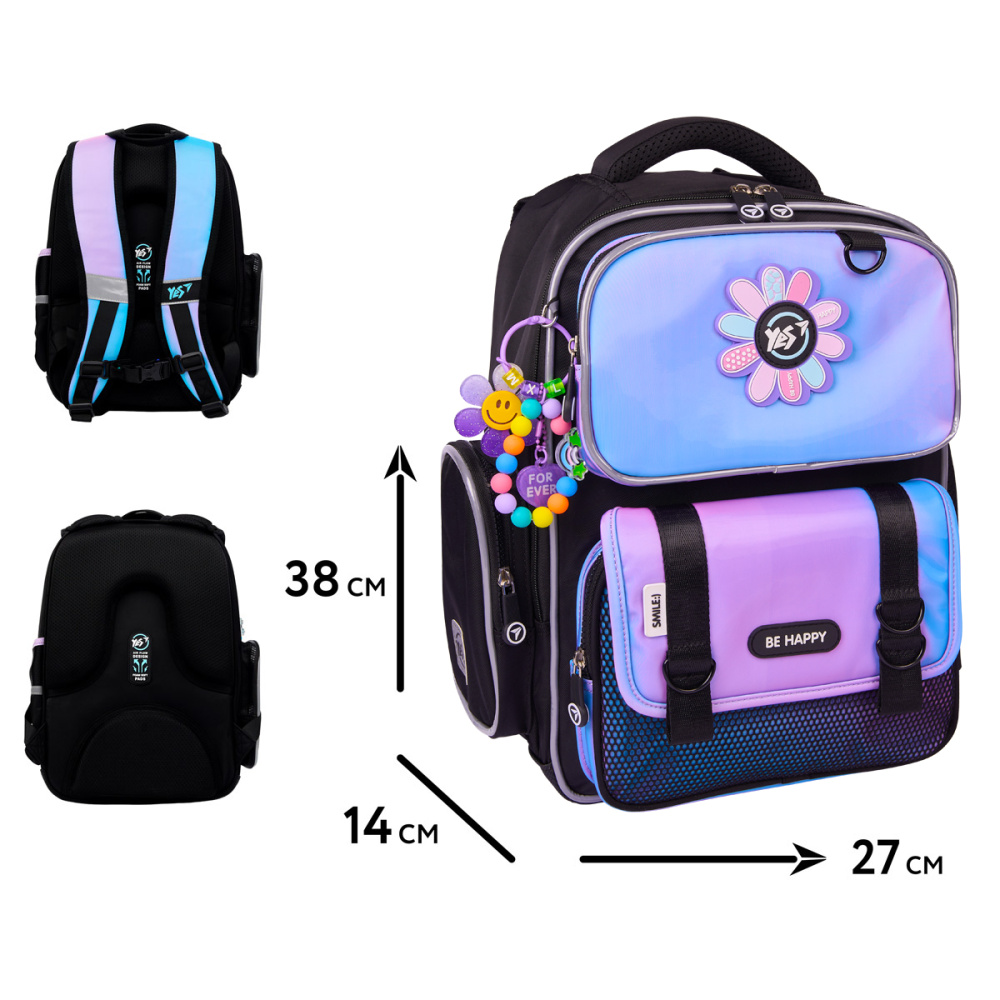 Рюкзак Yes S-101 Be Happy - справжній must-have для дівчат, які прагнуть завжди бути в центрі уваги. Контрастне поєднання чорного кольору та світлого градієнту створює ефектний і сучасний дизайн, що привертає погляди та підкреслює індивідуальний стиль. Тематичний брелок доповнює образ. Стильно, вишукано, сучасно - нічого зайвого!