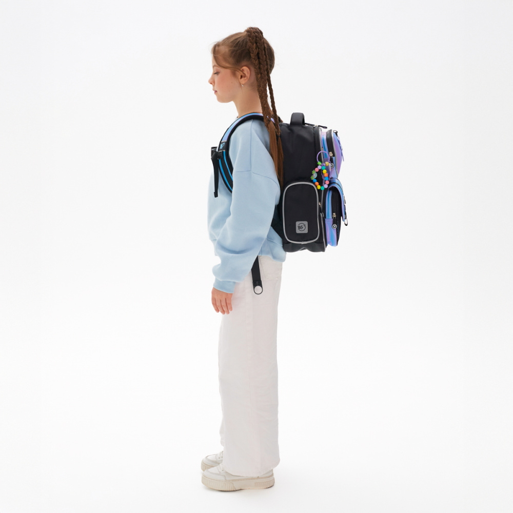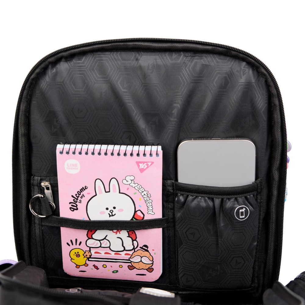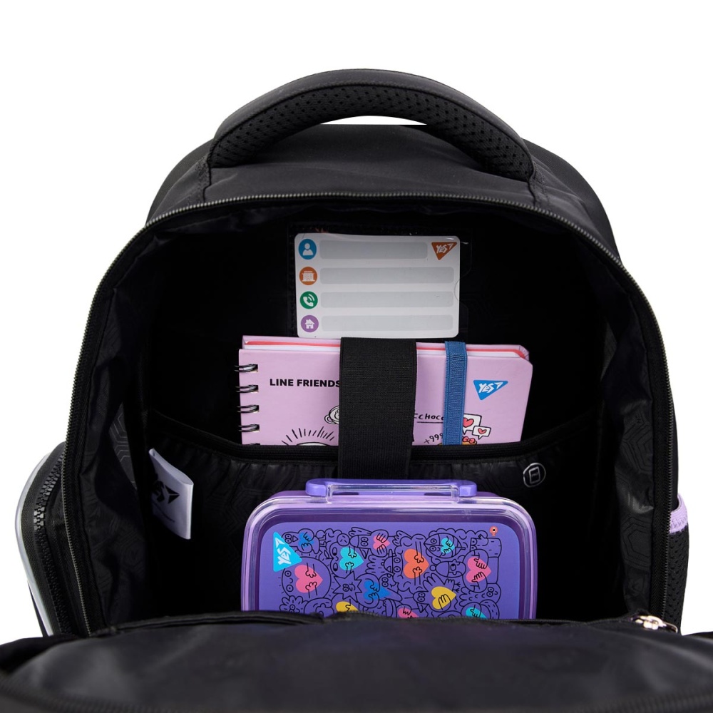 Рюкзак S-101 має 1 містке відділення з органайзером, що дозволяє легко розмістити підручники та зошити, а 2 передні та 2 бокові кишені допоможуть тримати у порядку шкільне приладдя та інші дрібні речі. Відкидне дно всередині рюкзака додає йому стійкості.