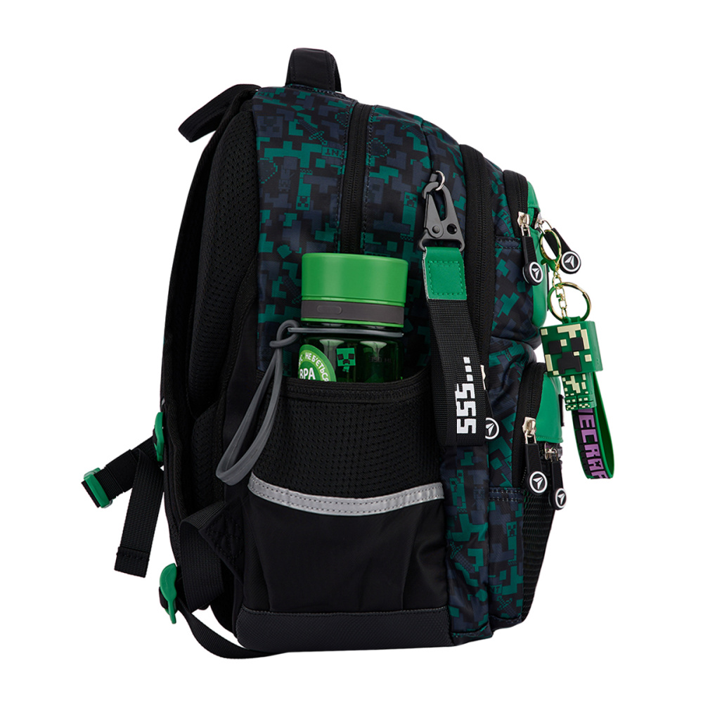 Завдяки поєднанню різних фактур та кольорів матеріалів, рюкзак Yes S-108 Minecraft Watch Out виглядає модно і сучасно. Виразний піксельний патерн додає оригінальності та динамічності, роблячи рюкзак особливим аксесуаром для активного хлопчика, шанувальника популярної гри Майнкрафт. До рюкзака додається стильний брелок-підвіска, що створює завершений образ і може стати яскравим акцентом або використовуватися окремо як цікавий аксесуар.