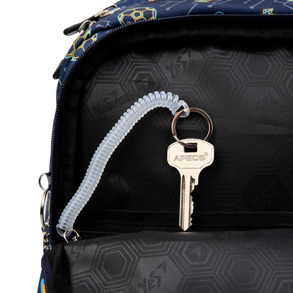Принт футбольних м'ячів та бутсів на шкільному рюкзаку YES S-52 Ergo Football Gamer, прикольний брелок надихнуть школяра, який цікавиться футболом, і додадуть впевненості. Рюкзак стане улюбленим супутником школяра.