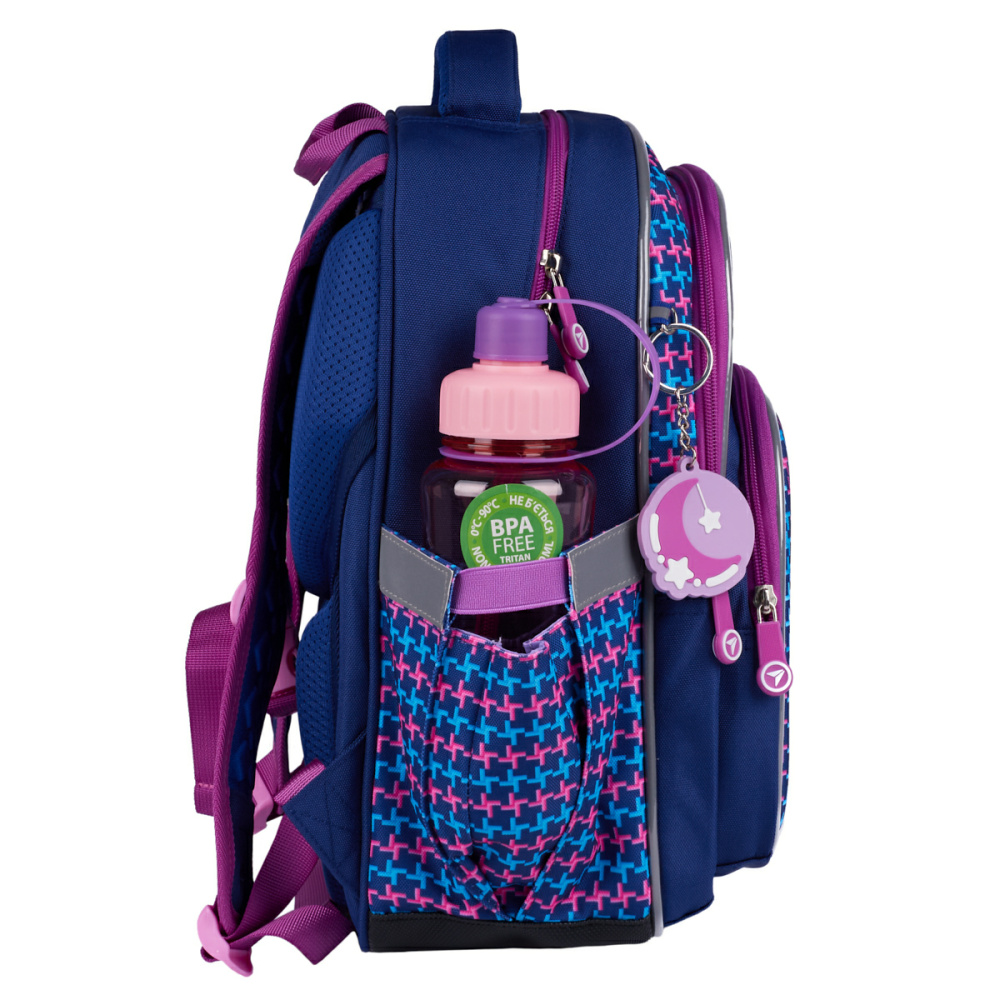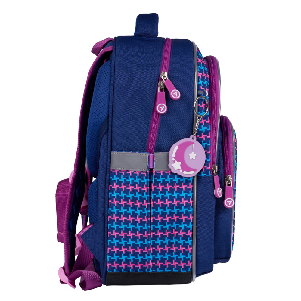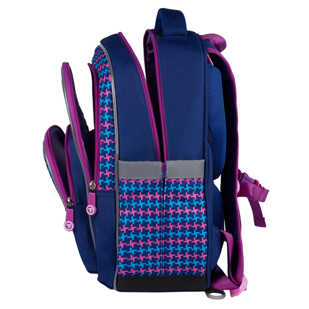 Зовнішні бокові кишені, внутрішні відділення та органайзер надають можливість розмістити все необхідне для школи.