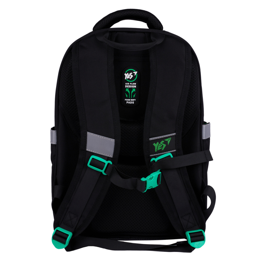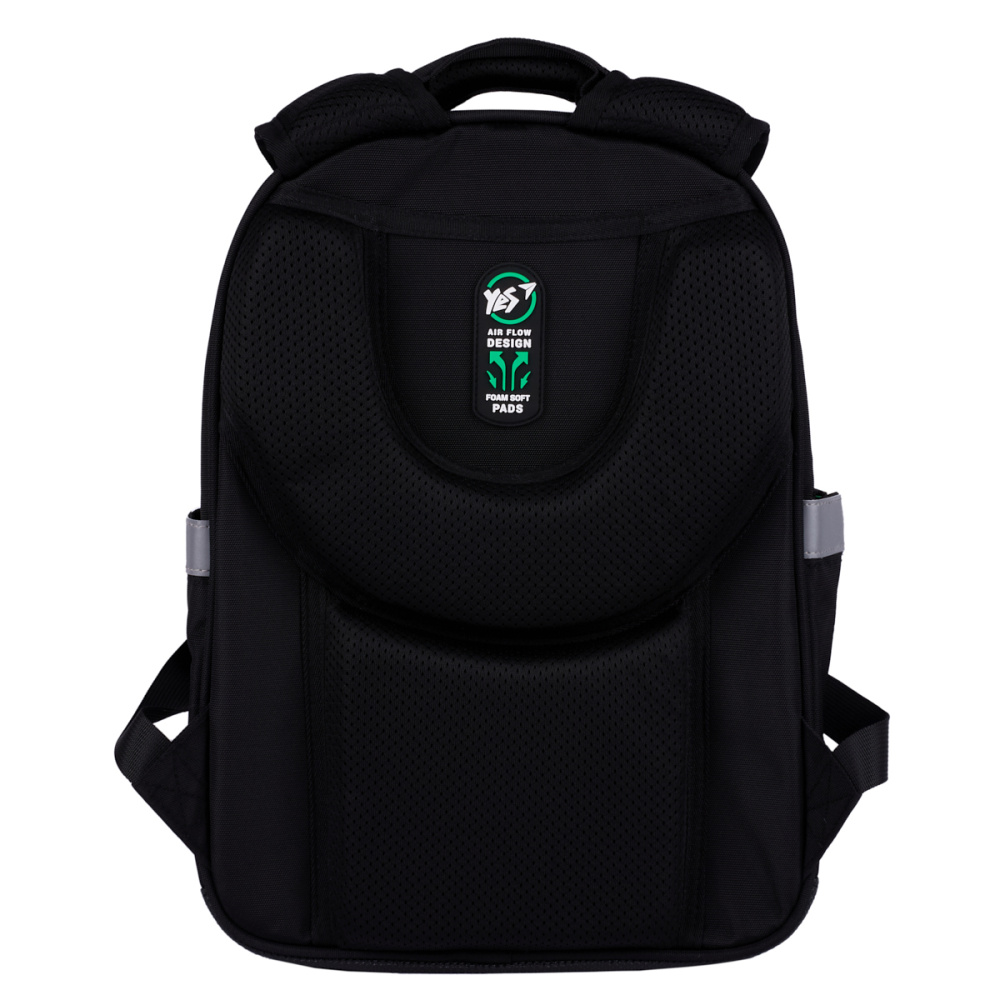 Рюкзак S-91 з ортопедичною спинкою від торгової марки YES ущільнений по всьому корпусу спіненим поліетиленом і добре тримає форму. Передня кишеня рюкзаку виготовлена з EVA матеріалу, литого або м’якого, залежно від дизайну, що забезпечує надійний захист вмісту. Зовнішній матеріал рюкзака – міцний водовідштовхувальний поліестер.