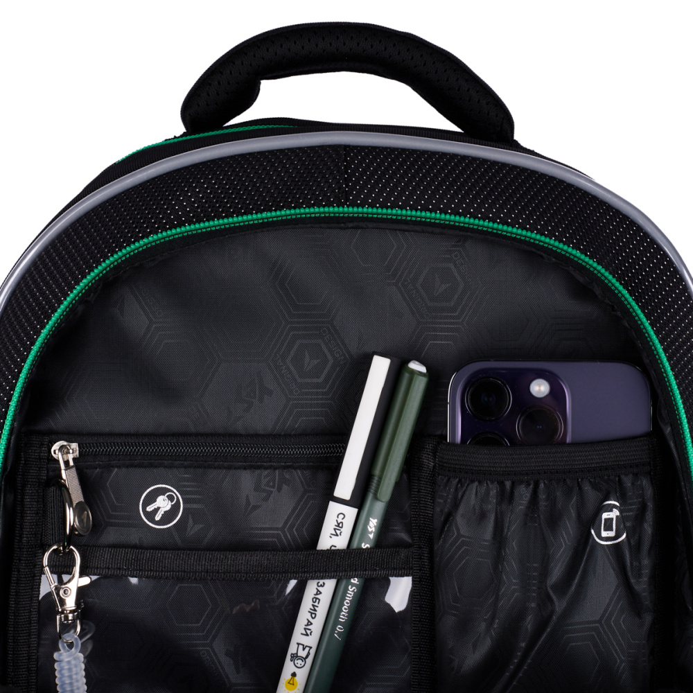 Зовнішні бокові кишені, внутрішні відділення та органайзер надають можливість розмістити все необхідне для школи.